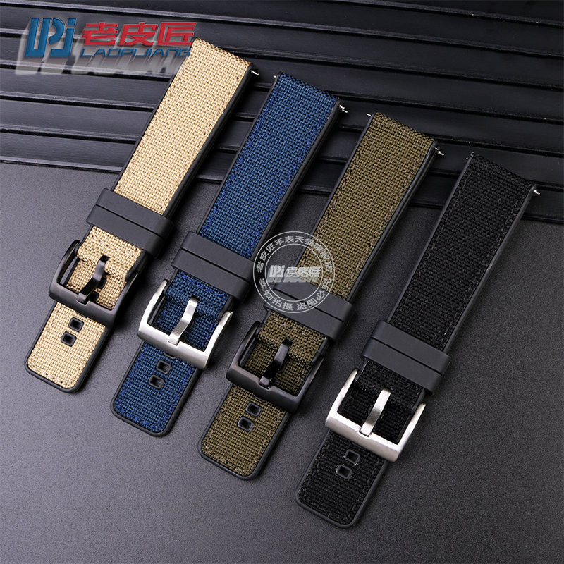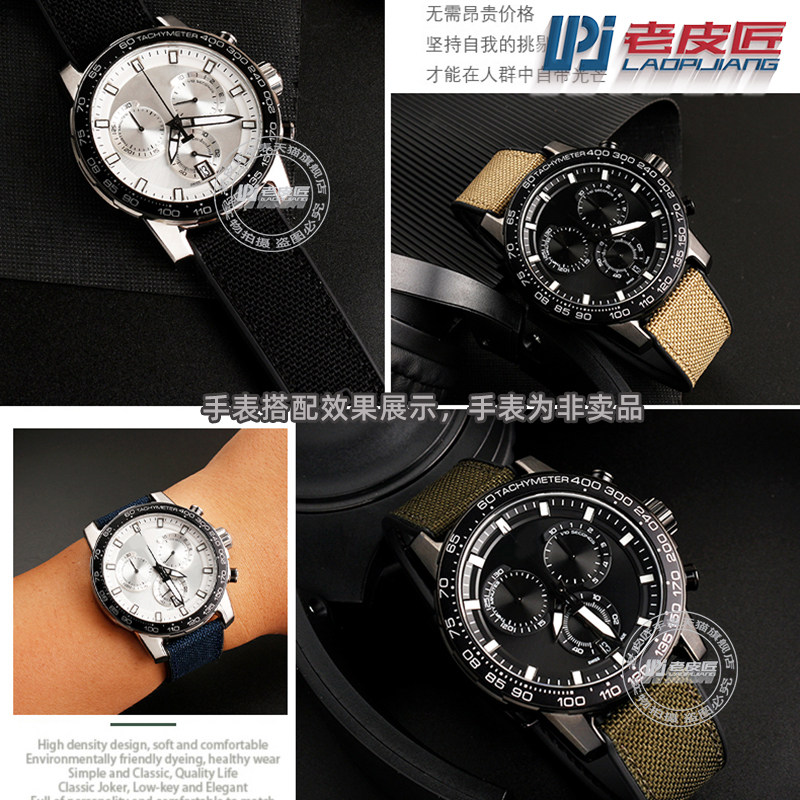 适配天梭1853速敢黑武士T125617A帆布防水硅胶底T125手表带22mm男