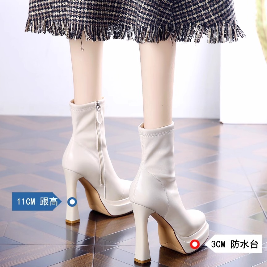 欧美方头超高跟靴子2025秋冬新款宴会走秀鞋时尚防水台粗跟短靴女