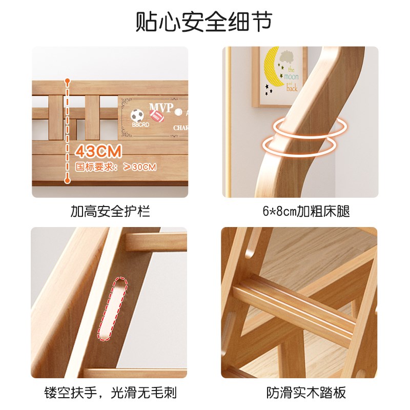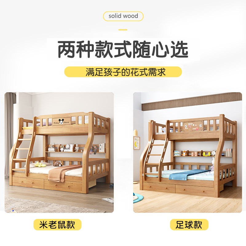 实木上下床橡木儿童床高低铺字母床子母床成年上下铺双层床高低床