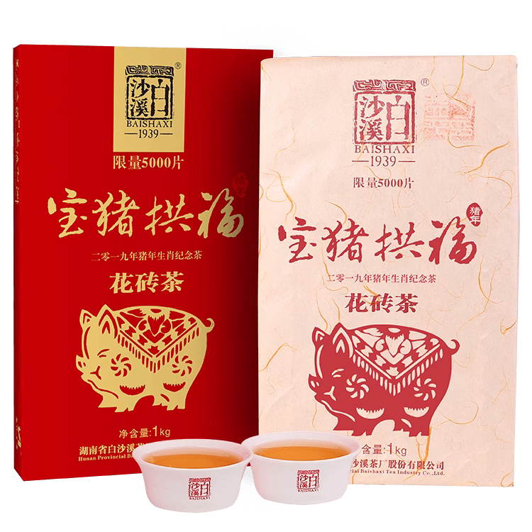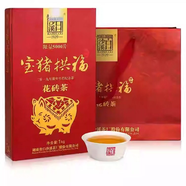 湖南安化黑茶白沙溪限量己亥猪年生肖花砖茶宝猪拱福礼盒