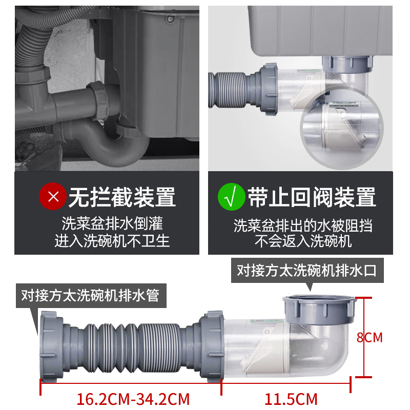 解决方太水槽洗碗机下水管倒灌问题潜水艇厨房洗菜盆下水管配件
