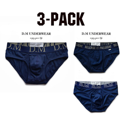3条,D.M三角裤U凸纯色基础男内裤 低腰性感 运动吸汗正装简约黑