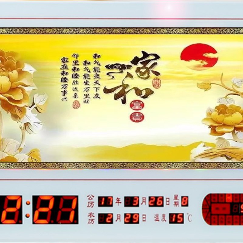 led万年历数码电子钟表客厅大风景山水画日历钟挂钟壁挂墙上礼品