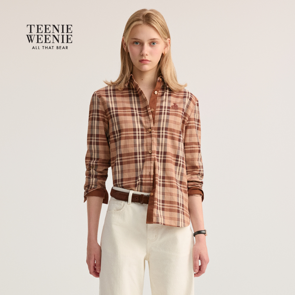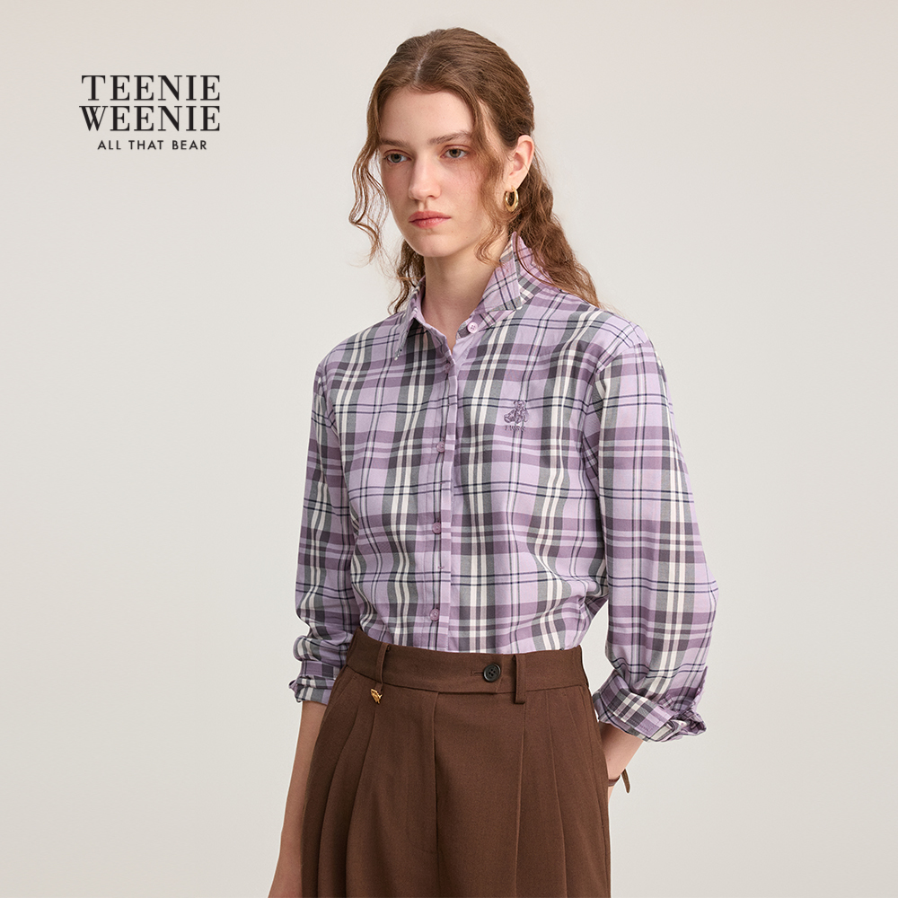 TeenieWeenie小熊女装衬衫2025年秋季新款知识分子风格纹翻领衬衫