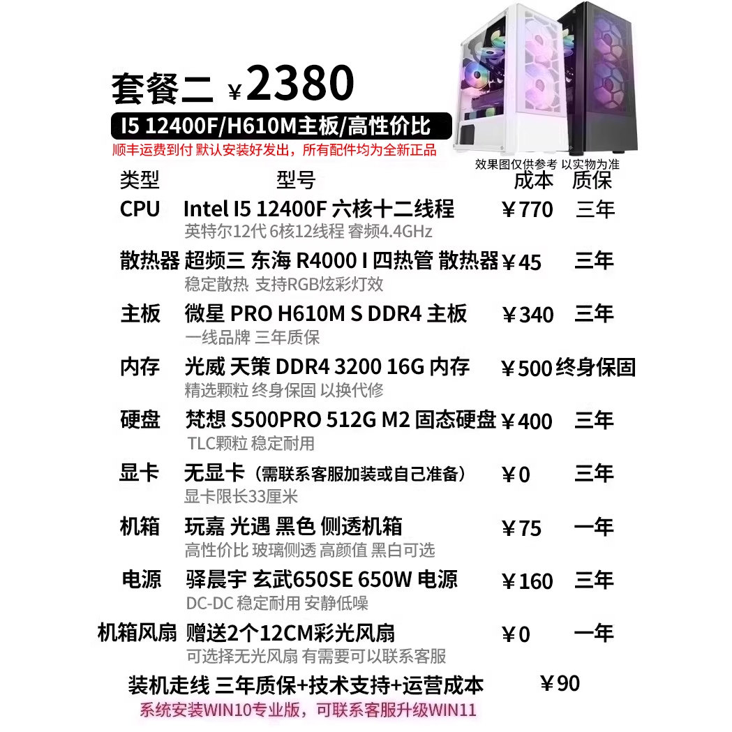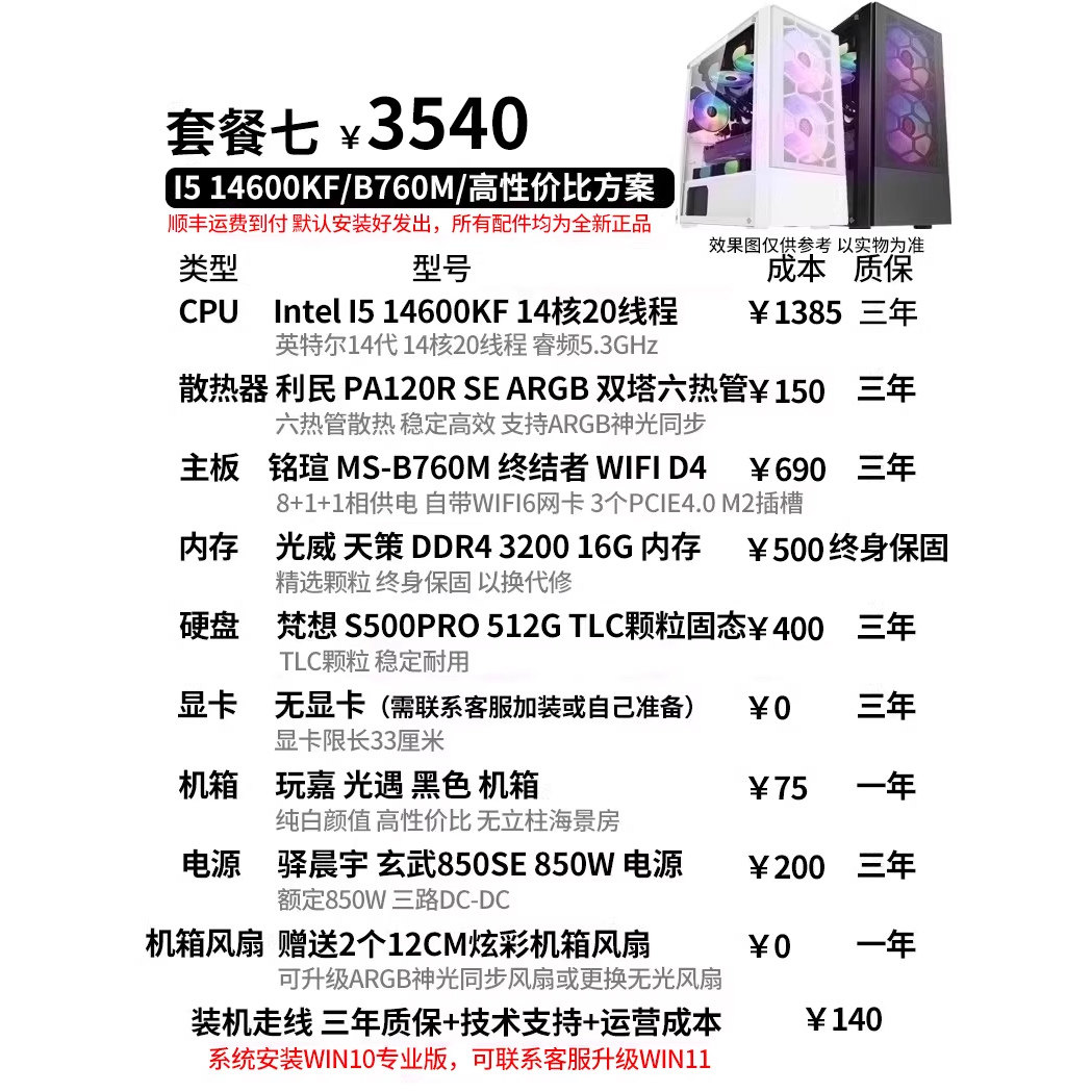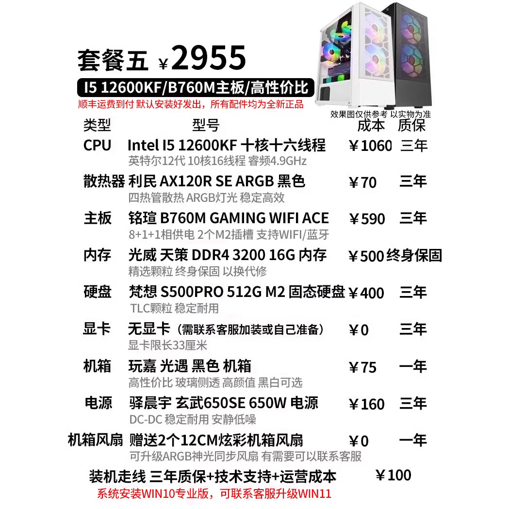 I5 12600KF/14600KF/9600X 无显卡组装台式机电脑DIY整机游戏主机
