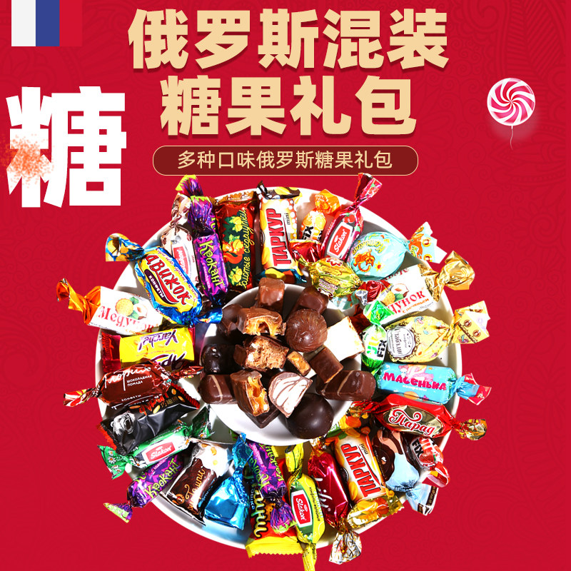 俄罗斯糖果进口混合装巧克力夹心紫皮糖喜糖年货整箱零食品正宗
