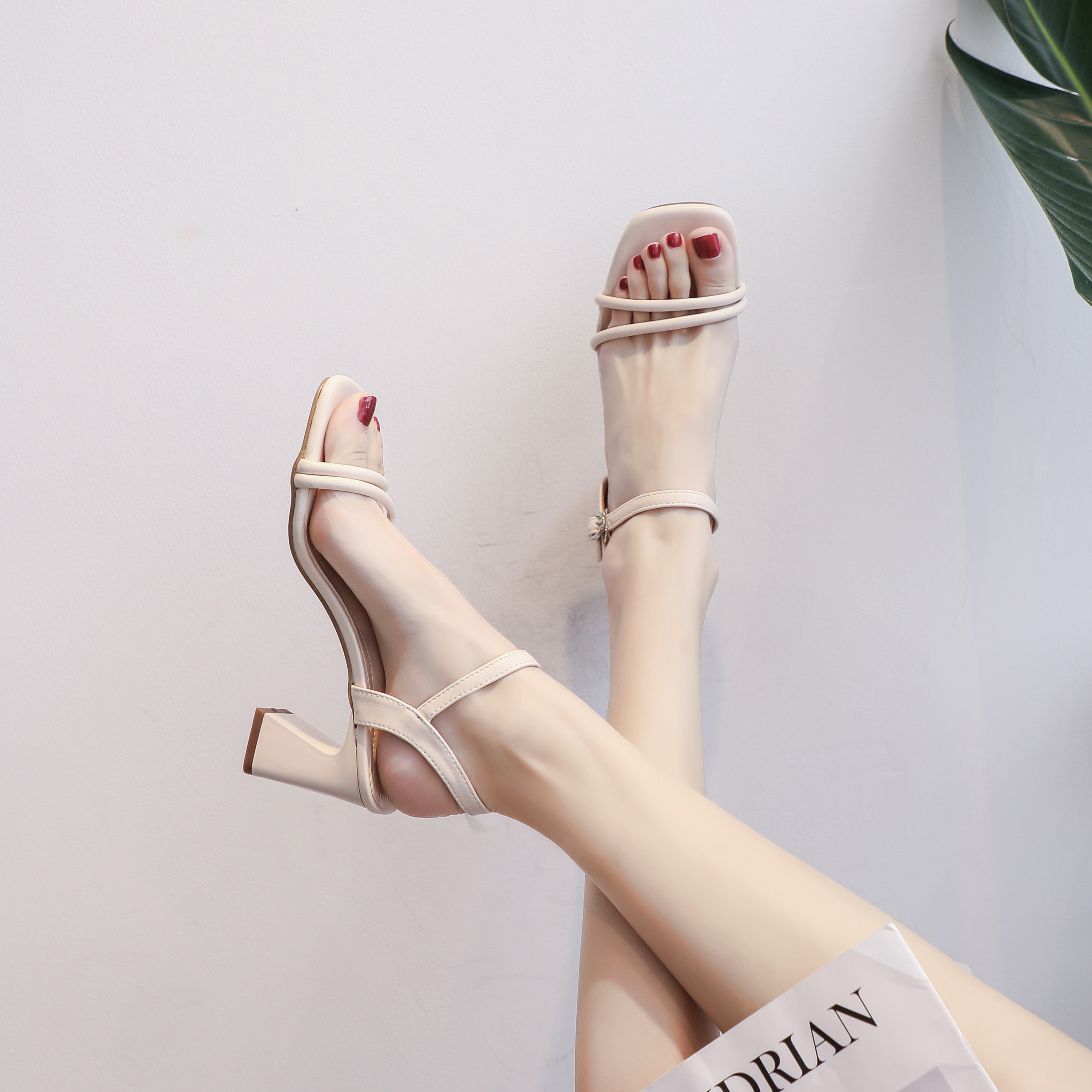 凉鞋女2025年夏季新款百搭粗跟中跟时装仙女风搭配裙子高跟罗马鞋