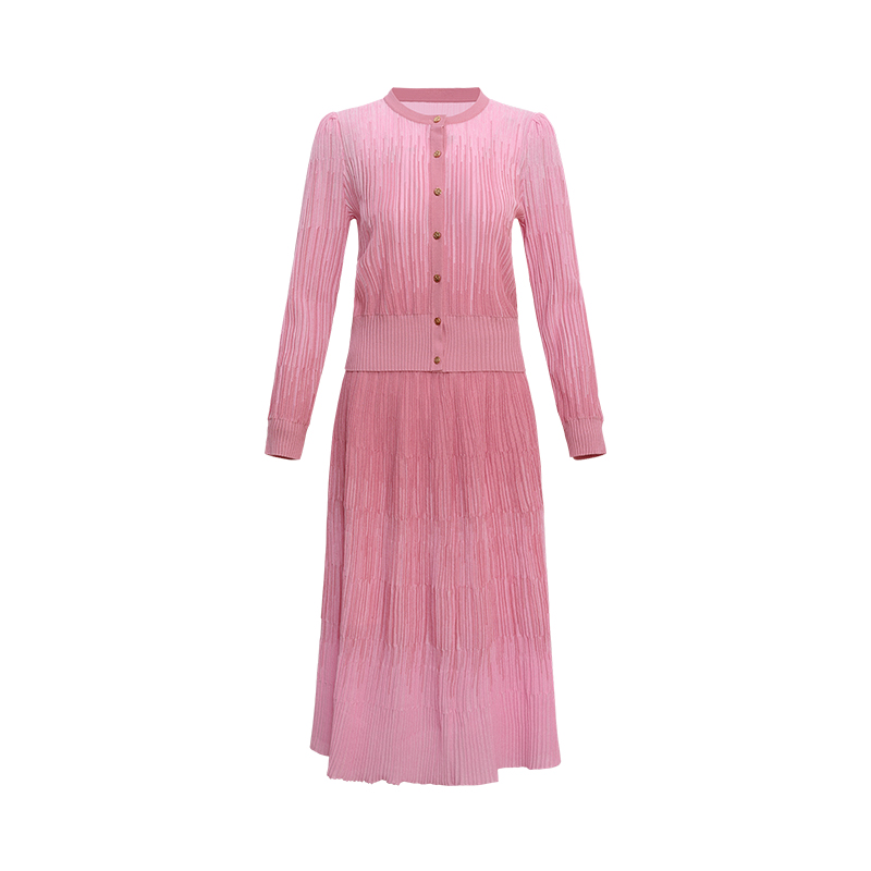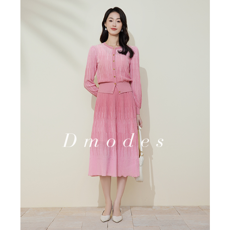 黛玛诗秋新款粉色名媛小香风套装时尚气质优雅针织衫半裙两件套女