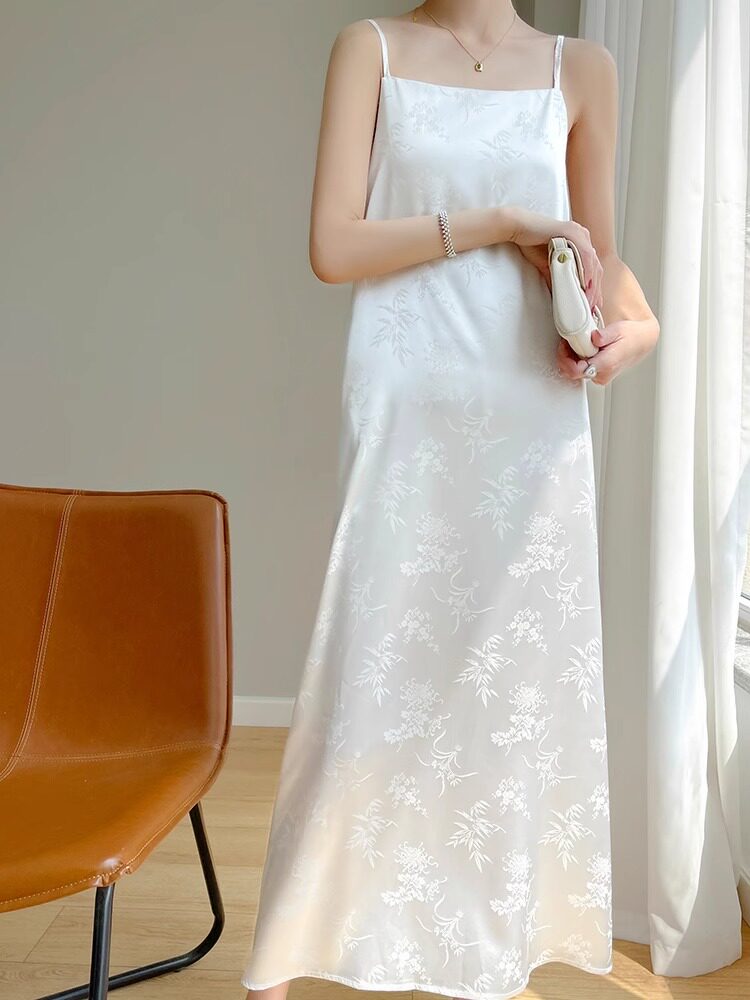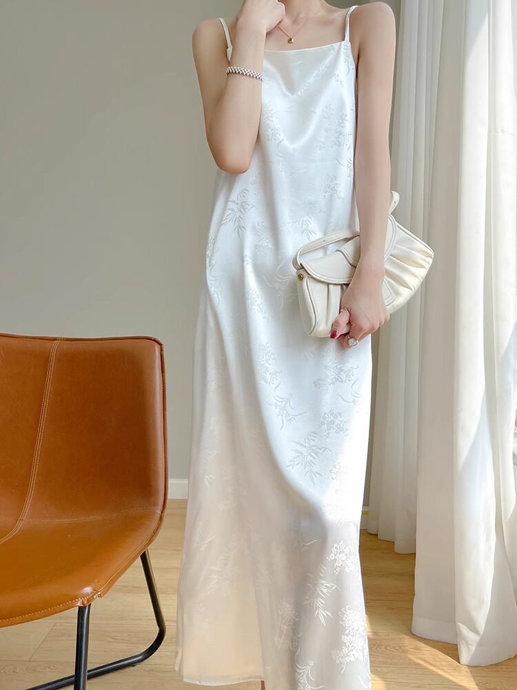 高级感小众显瘦气质吊带连衣裙女真丝夏季新款三醋酸提花缎面长裙