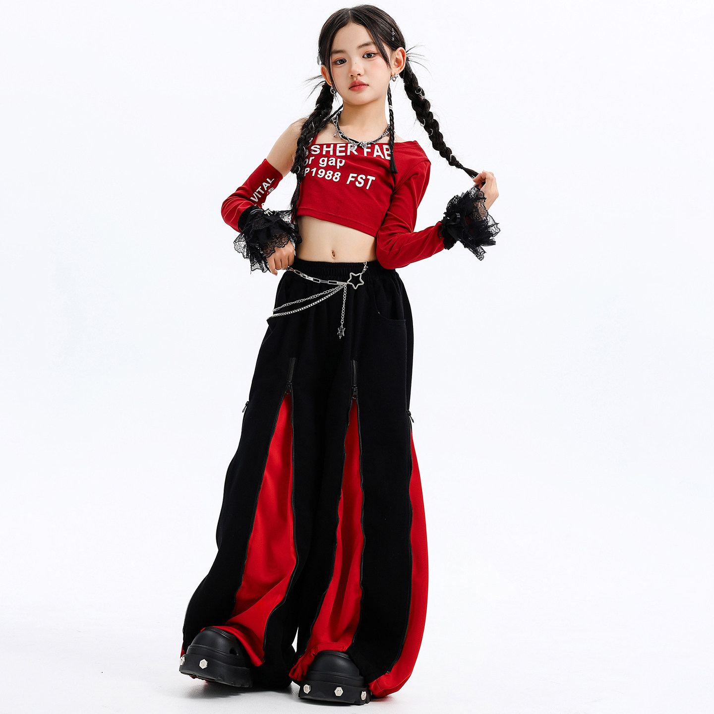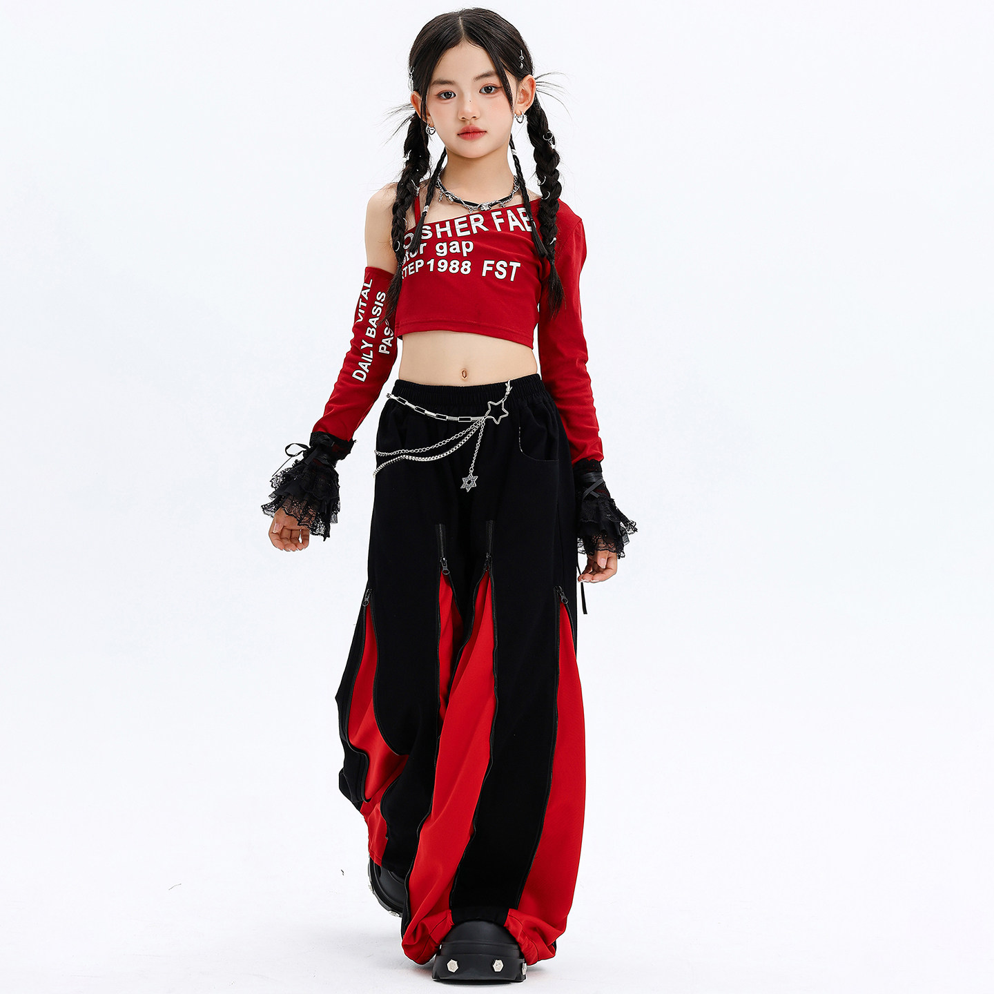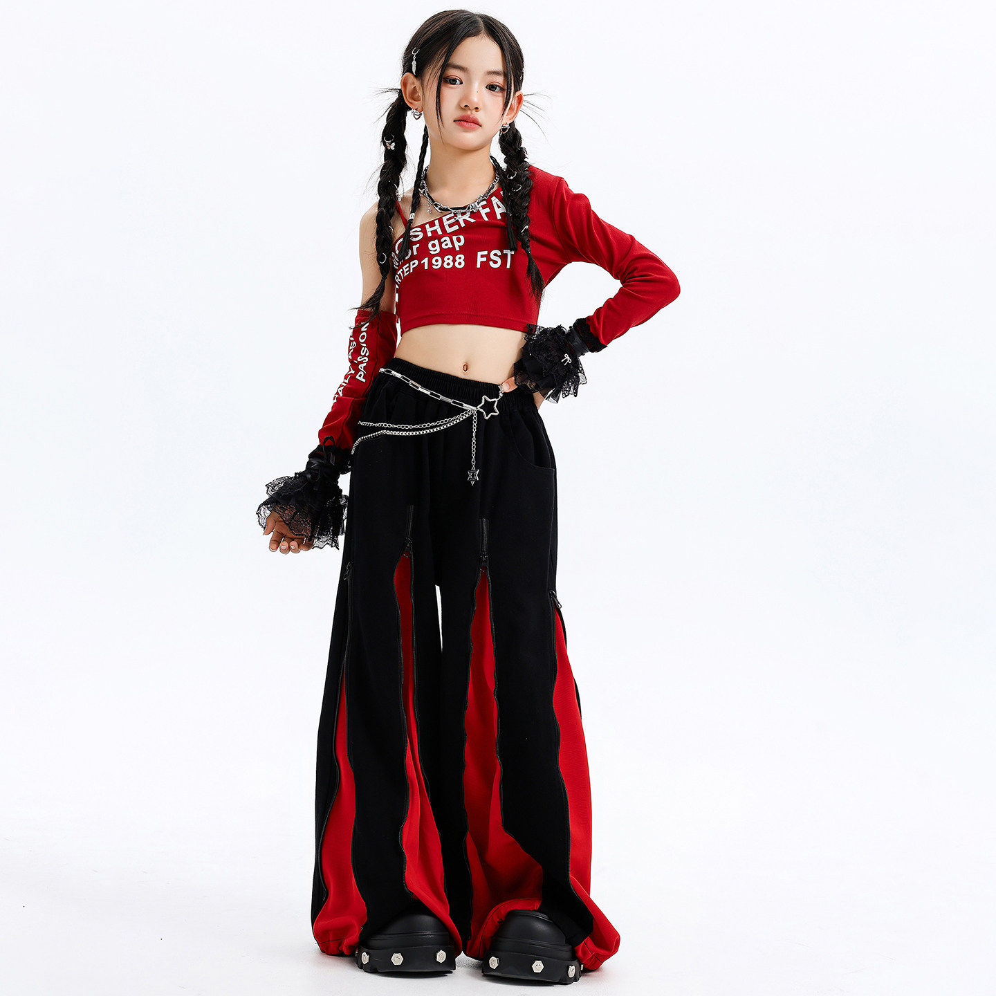 女童爵士舞服韩版露脐上衣阔腿裤jazz练功服女团街舞打歌舞演出服
