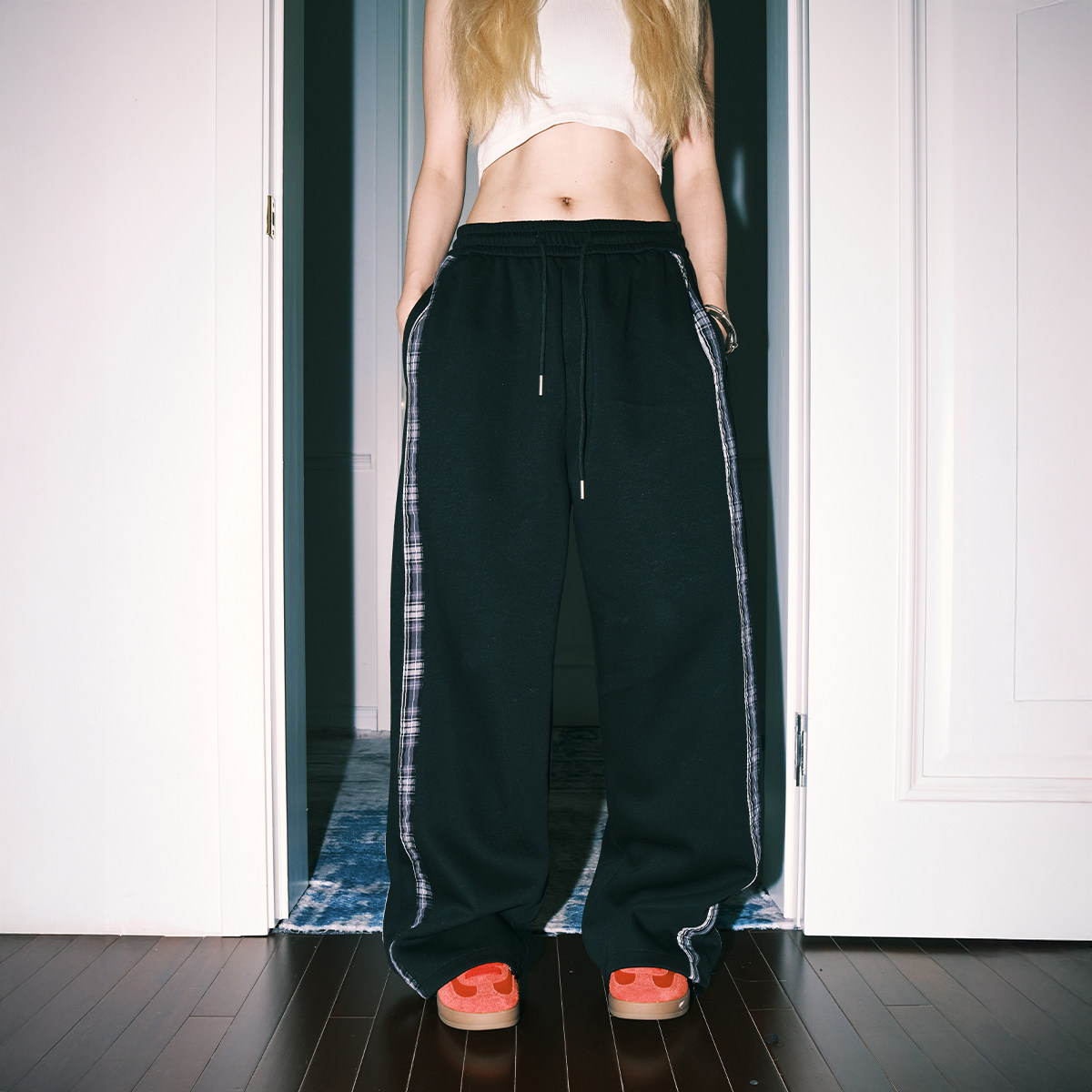 lemanism卫裤男2024春秋宽松直筒休闲裤情侣拼接运动裤长裤潮牌