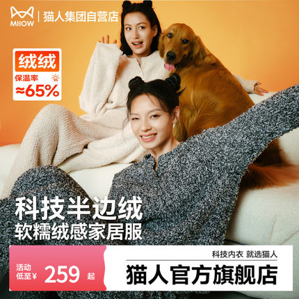 猫人暖绒绒半边绒家居服