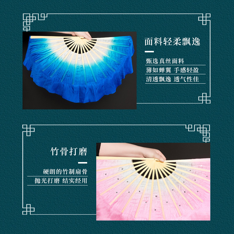 真丝舞蹈扇成人广场舞双面胶州秧歌舞蹈扇子丝绸古典舞蹈表演道具