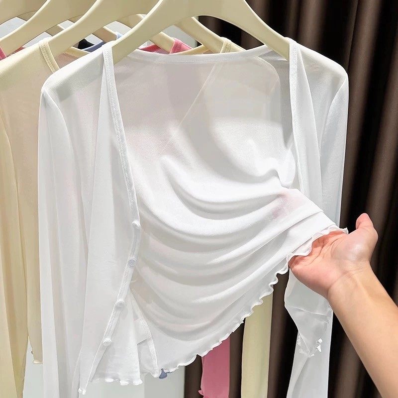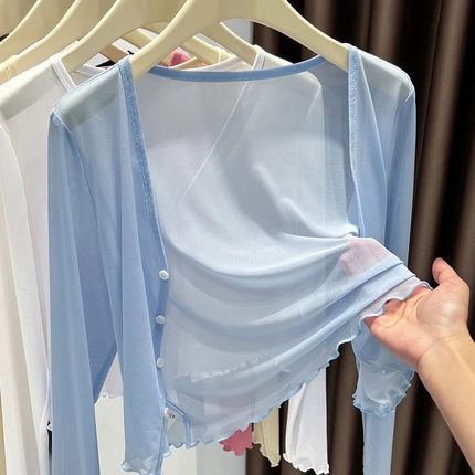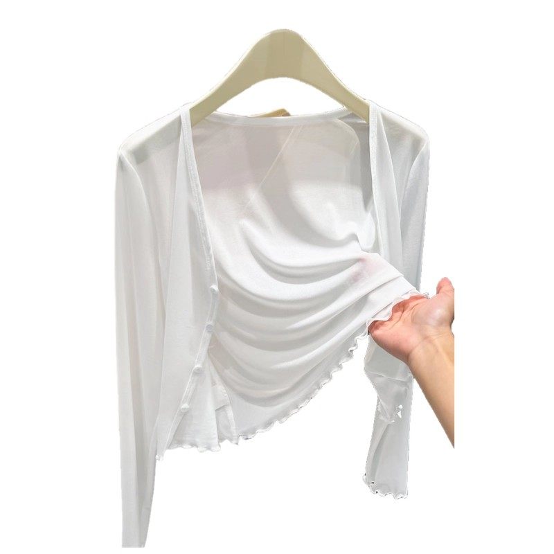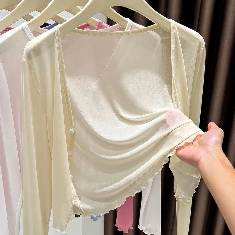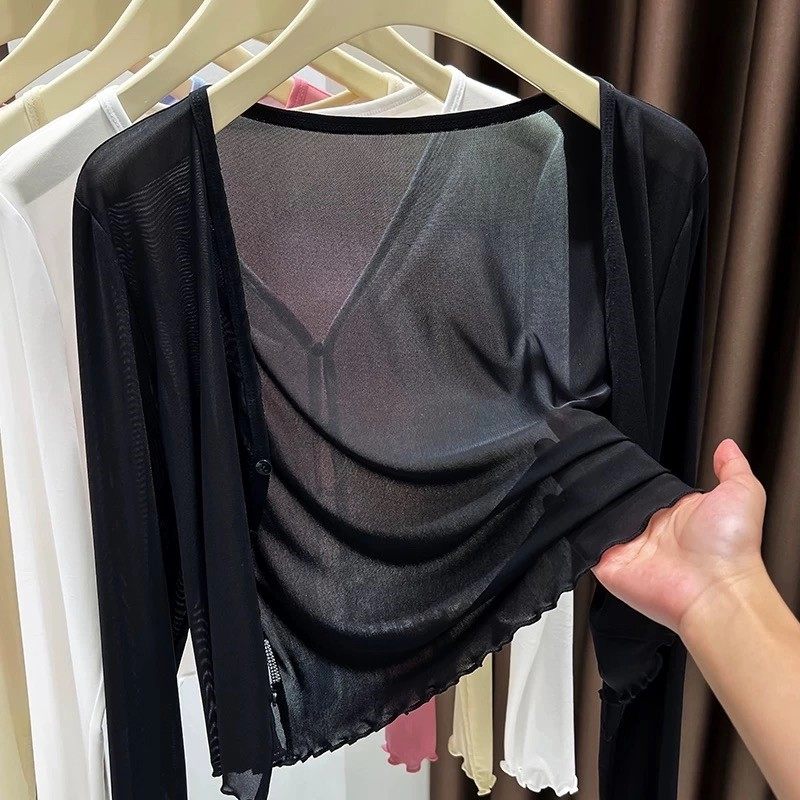 防晒开衫外搭女薄款网纱外套蕾丝小披肩夏季配吊带裙子短款罩衫女