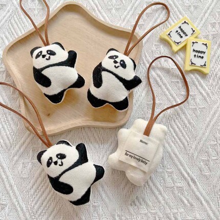卡通panda大熊猫可爱国潮包包挂件布艺儿童姓名牌玩偶书包挂饰
