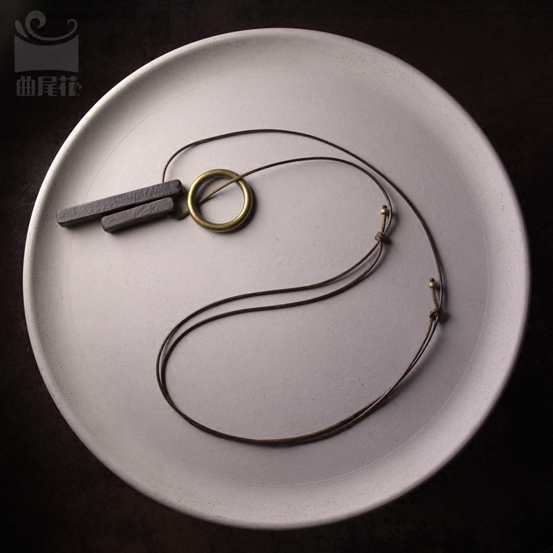 曲尾花手工毛衣链女 原创黑檀木饰品节日礼品项链简约欧美吊坠男