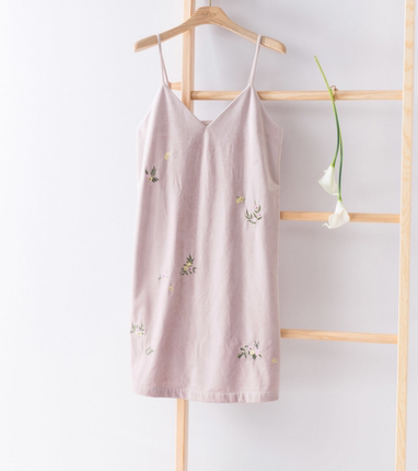 茵曼2018冬装新款小碎花绣花百搭无袖吊带连衣裙女1874103338