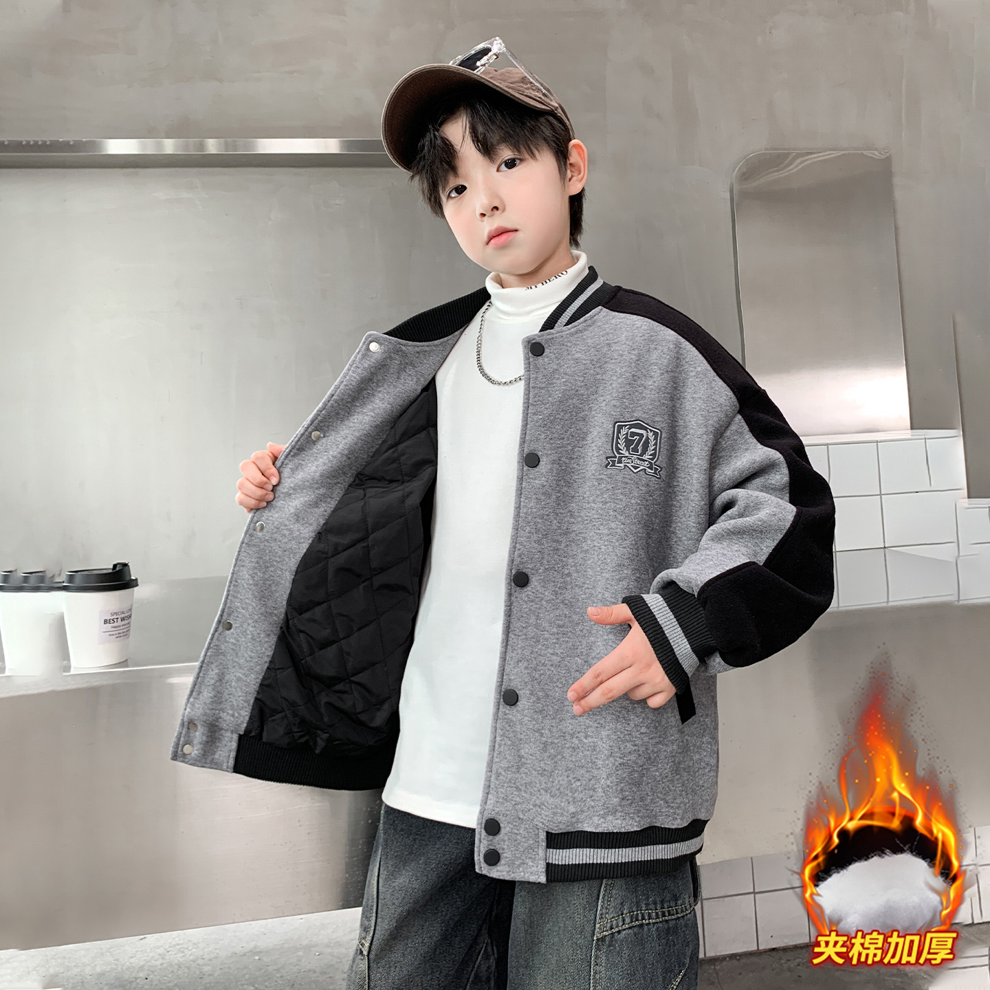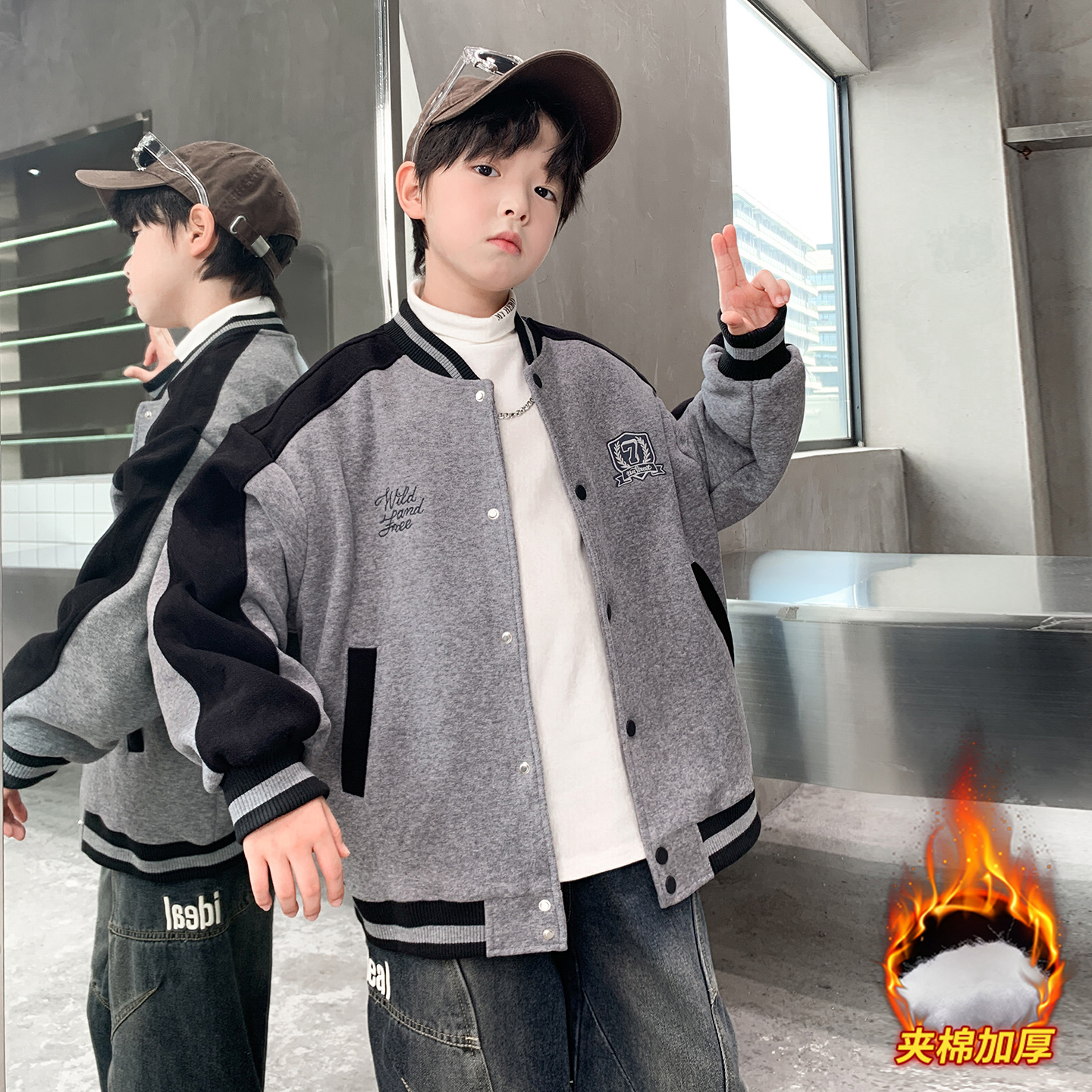 童装男童棒球服加绒秋冬款2025新款冬季大童加厚外套男孩青少年潮