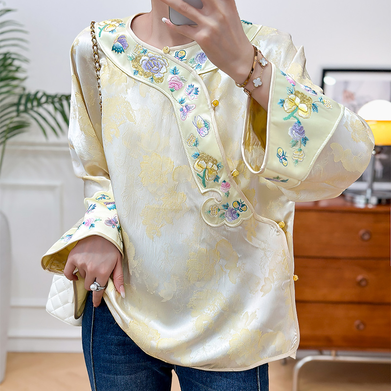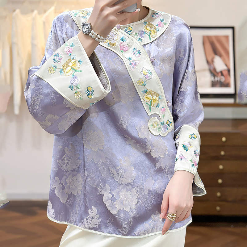 新中式国风女装2025新款唐装汉服复古刺绣民族风穿搭圆领盘扣上衣
