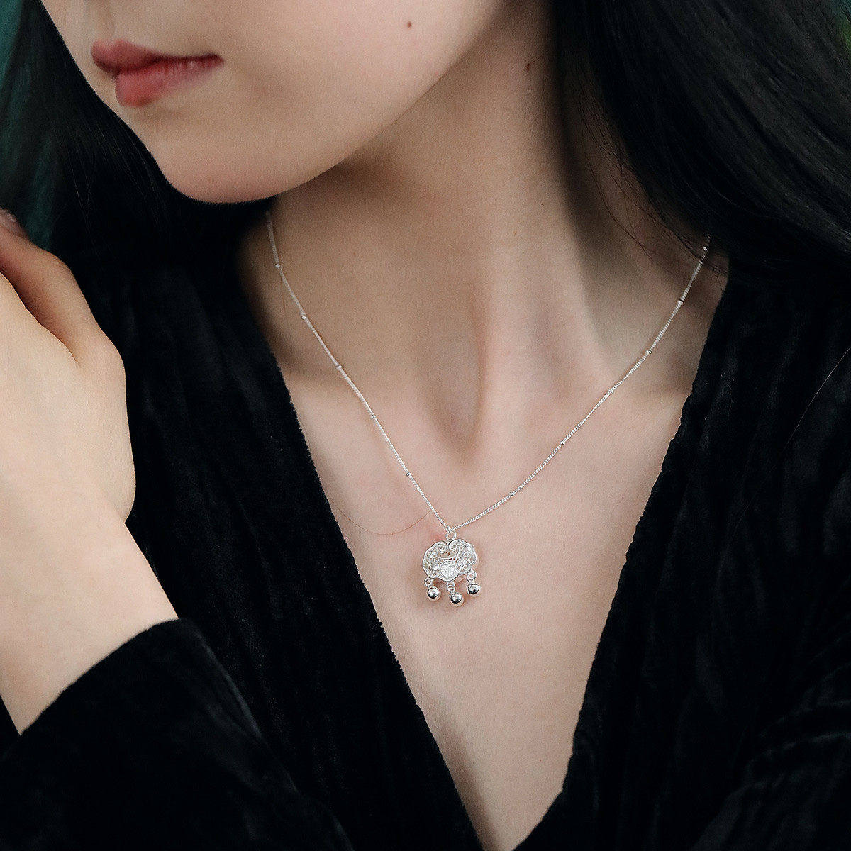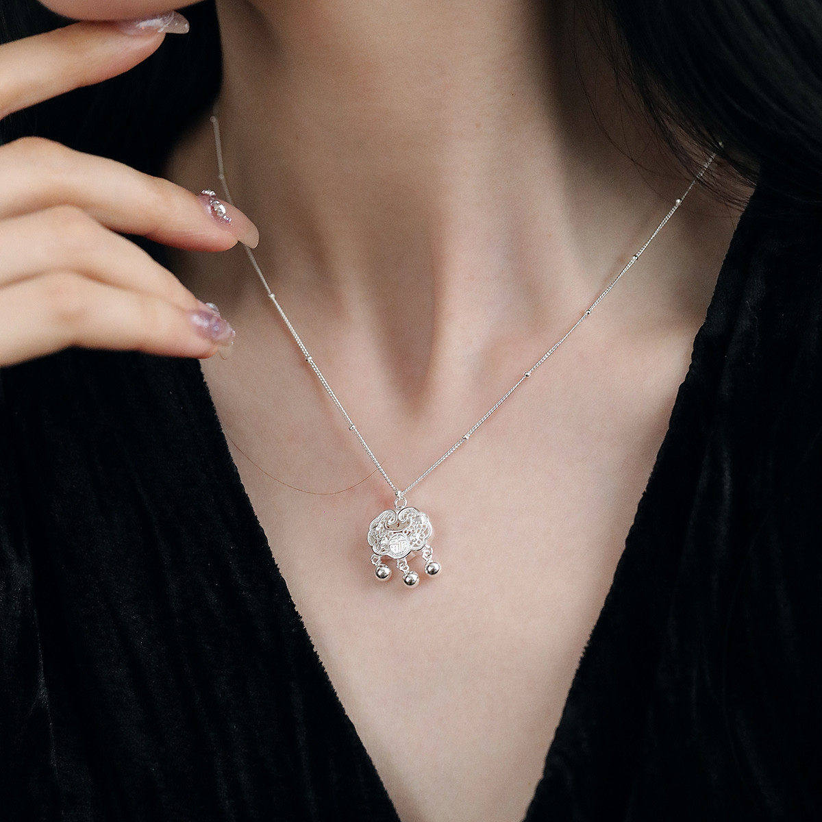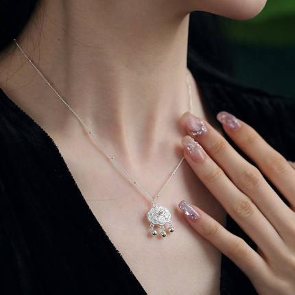 925银福字长命锁吊坠民族风高级感轻奢时尚精致锁骨链送闺蜜女友