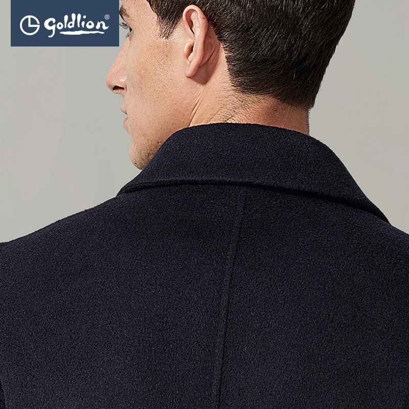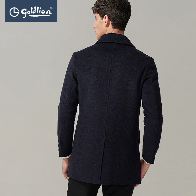 金利来秋冬款男士含羊毛厚实保暖时尚翻领中长款休闲大衣外套男装