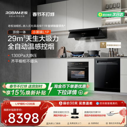 老板小黑镜L1P套系大吸力抽油烟机燃气灶一套烟灶套装官方旗舰店