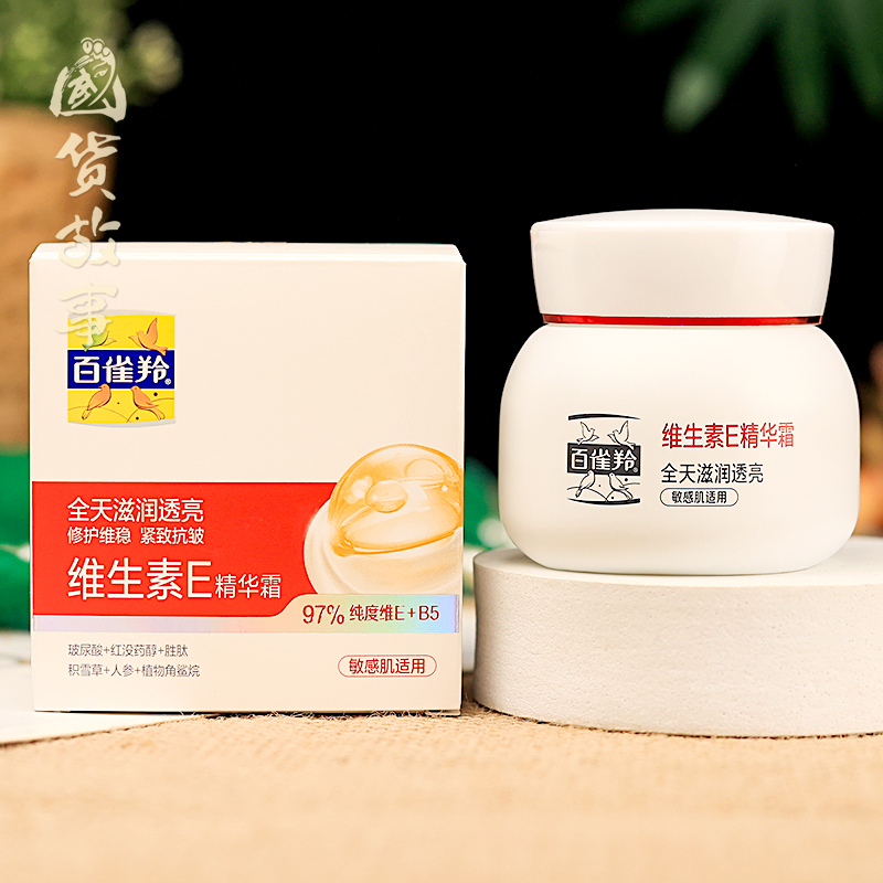 【国货故事】百雀羚维生素E精华面霜保湿补水紧致抗皱敏感肌正品