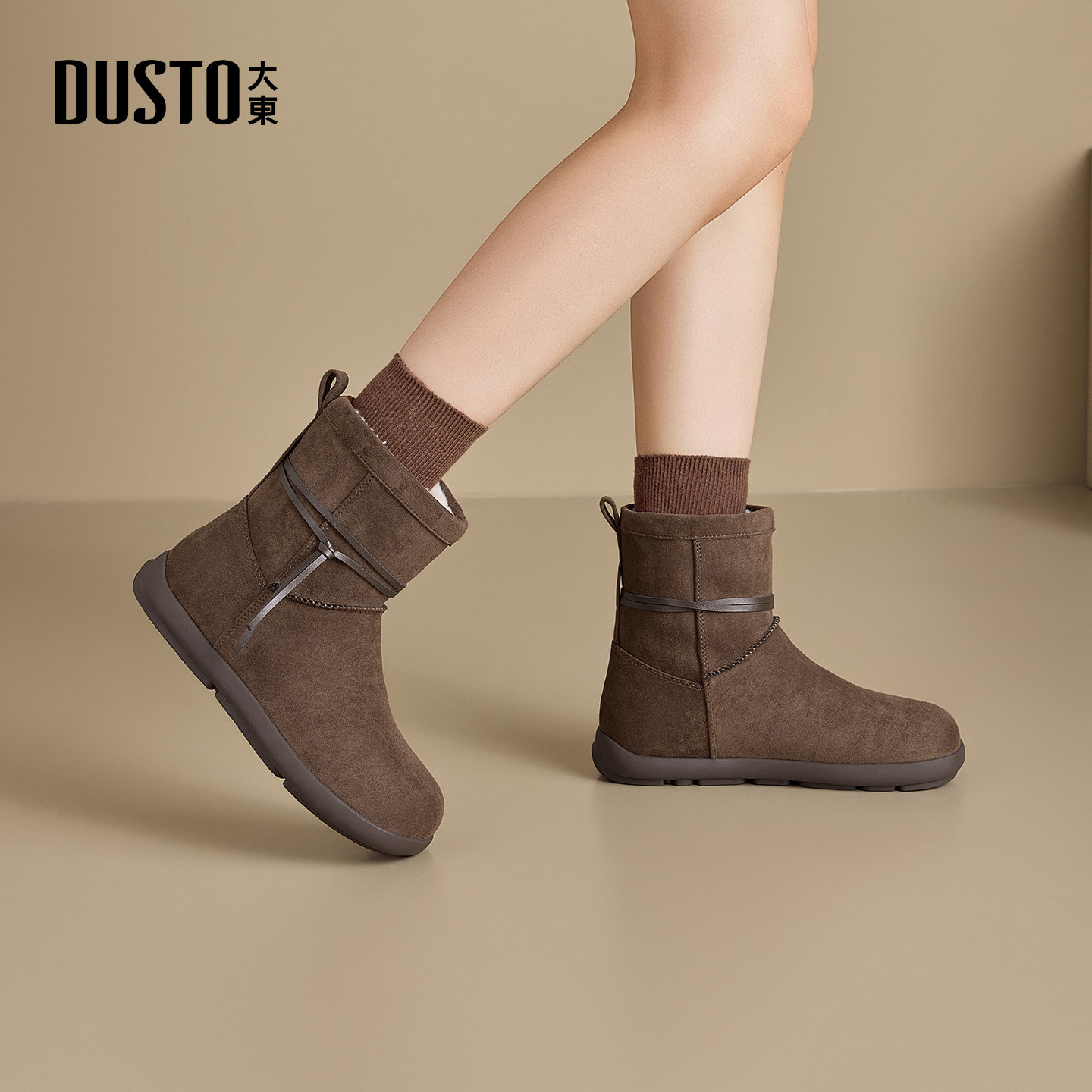 大东女靴厚底棉鞋2025冬季新款加绒保暖雪地靴百搭时尚平底短靴女
