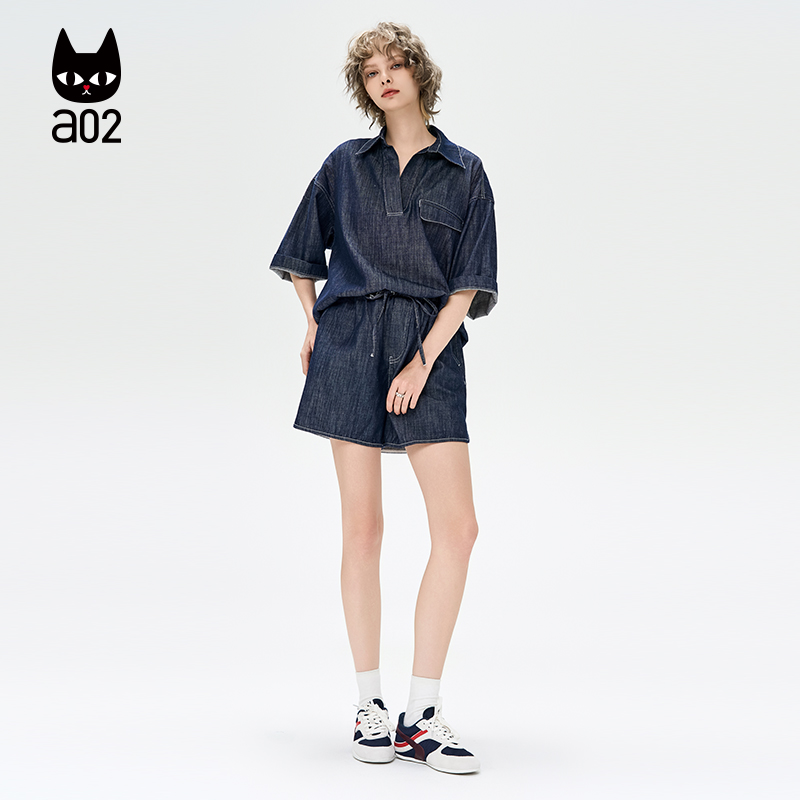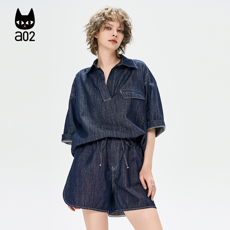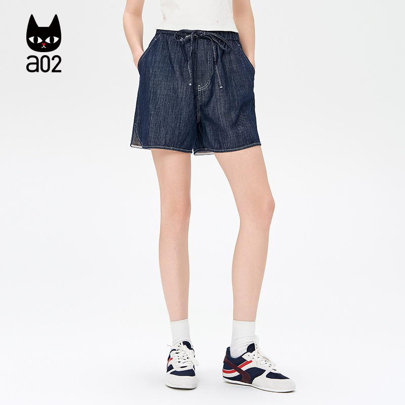 a02【ET自然系列】宽松阔腿牛仔短裤女2025新款夏薄款透气裤子