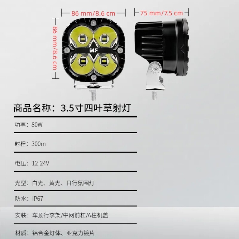 北京BJ40a柱射灯四叶草越野车改装led超亮牧马人A柱机盖无损支架