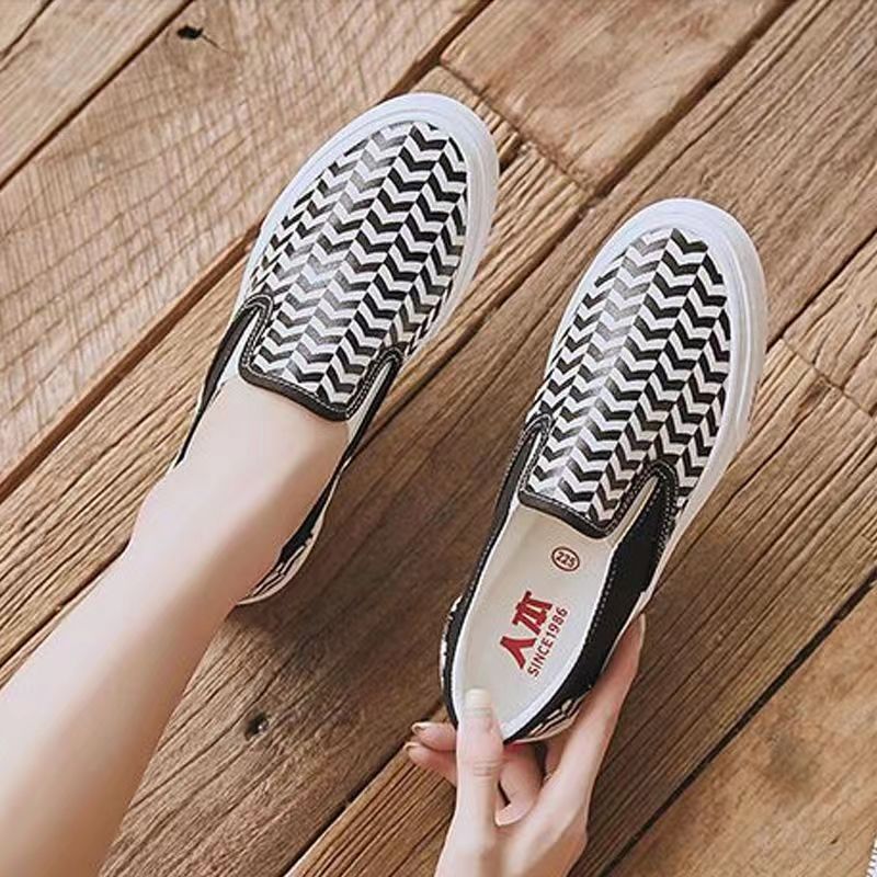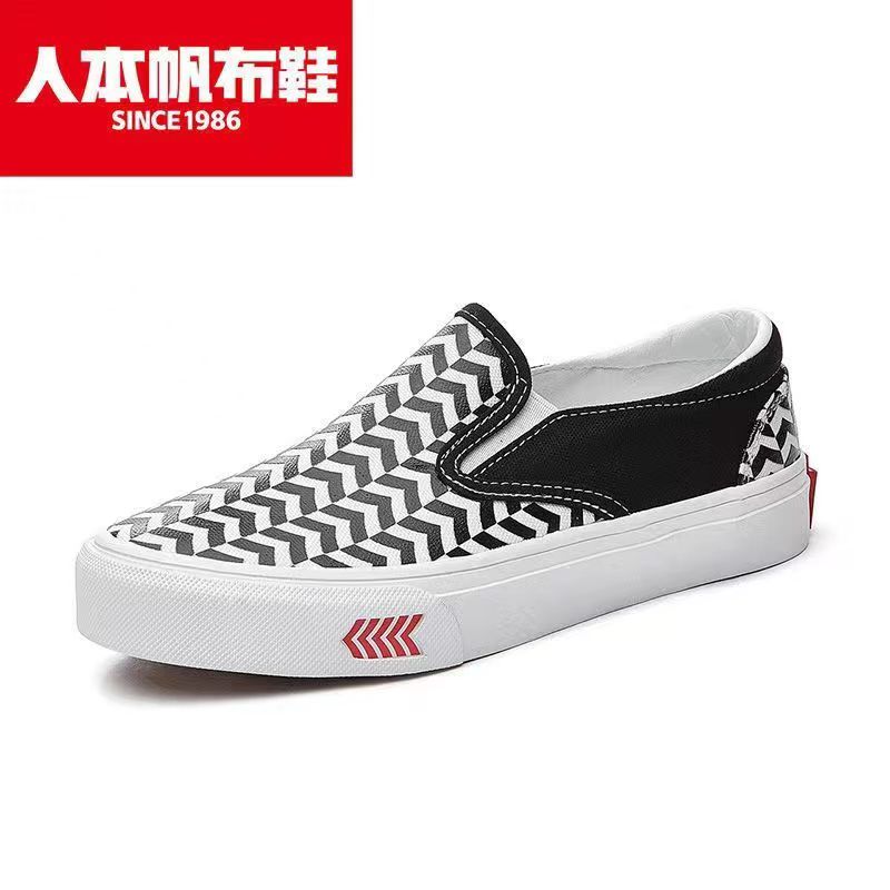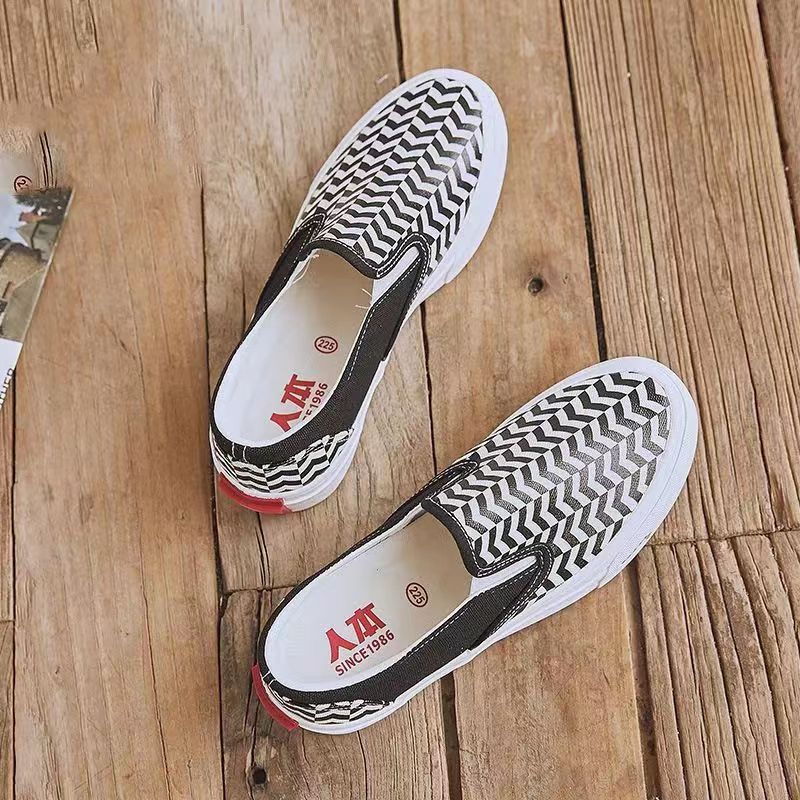 人本夏新款韩版帆布女平底格纹ulzzang休闲懒人鞋百搭一脚蹬女鞋