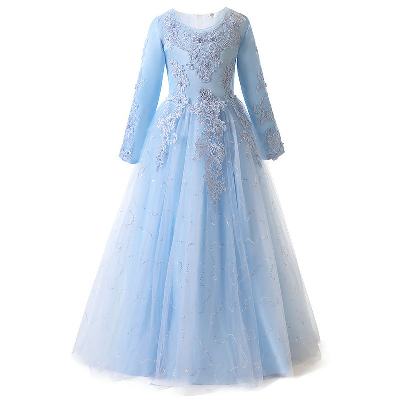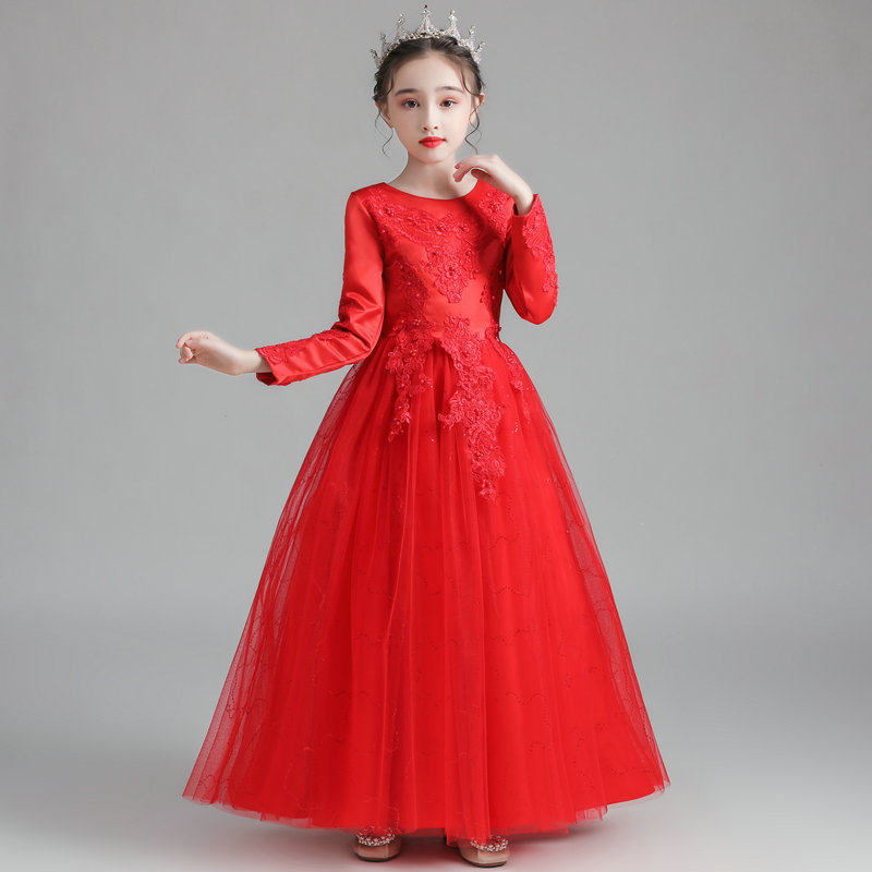 春秋冬长款儿童婚纱裙公主裙女童连衣裙蓬蓬长裙花童礼服表演出服