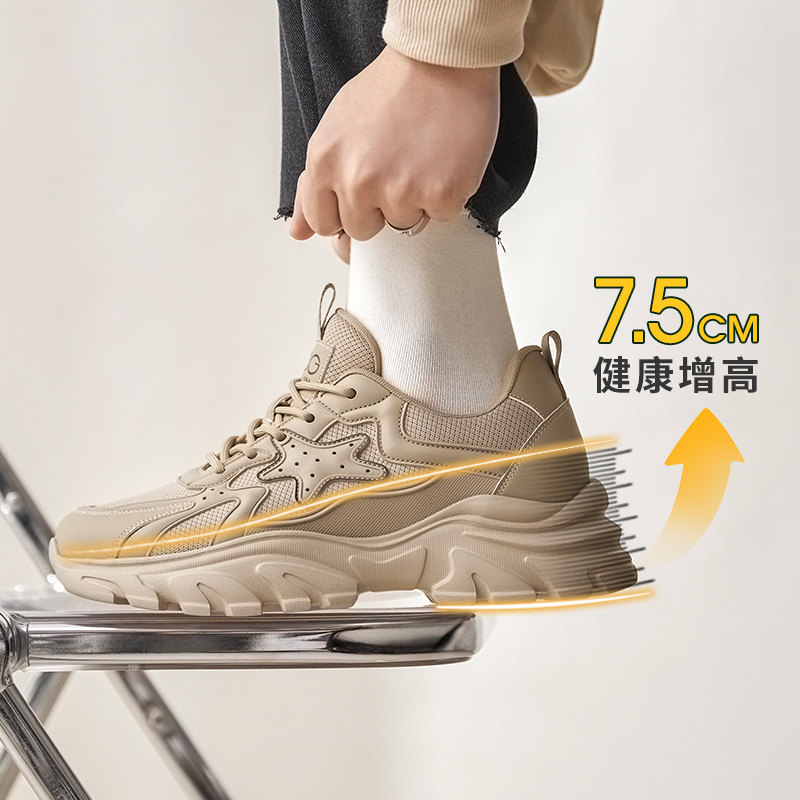 高哥内增高鞋8cm春季新款休闲男鞋厚底复古老爹鞋舒适轻质运动鞋
