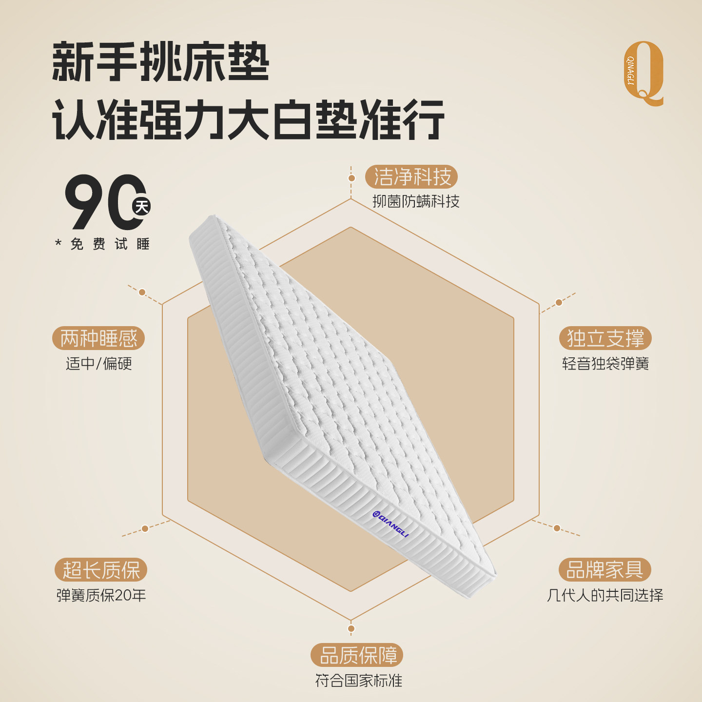 【大白垫】强力护脊0胶弹簧床垫