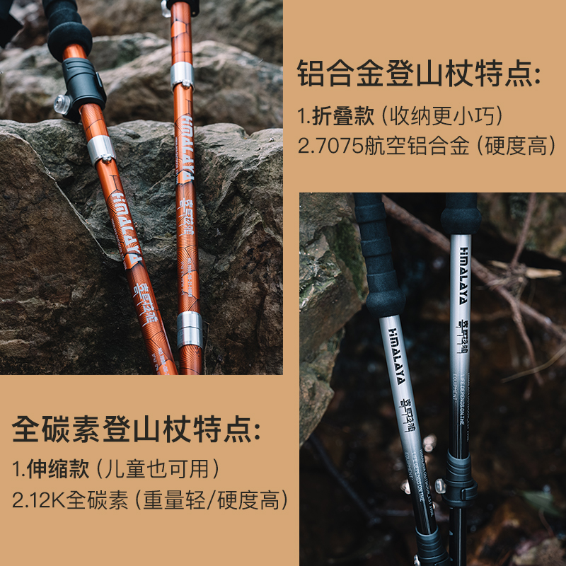 喜马拉雅专业户外折叠登山杖手杖碳纤维徒步装备防滑拐棍爬山拐杖