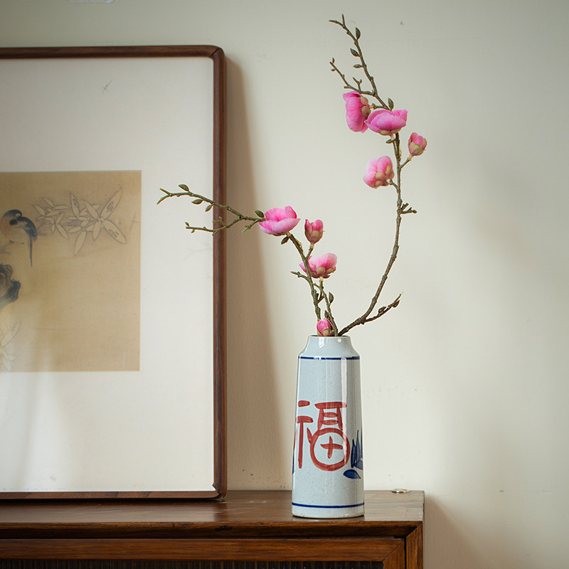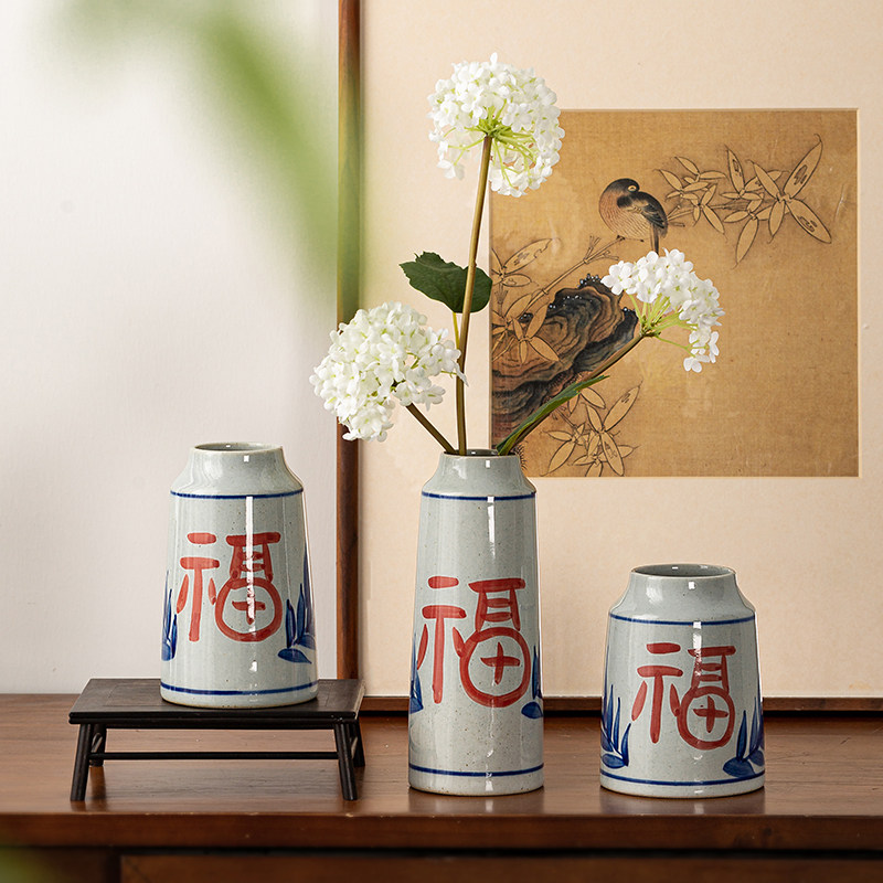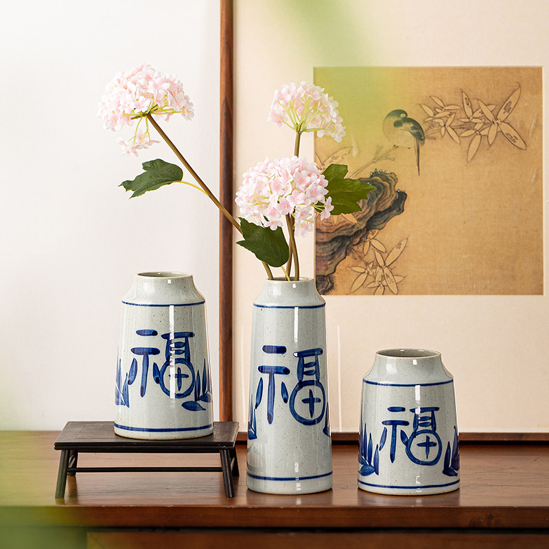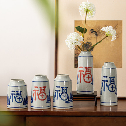 陶瓷福字花瓶景德镇手绘青花复古花插陶罐摆件中式风家居客厅装饰