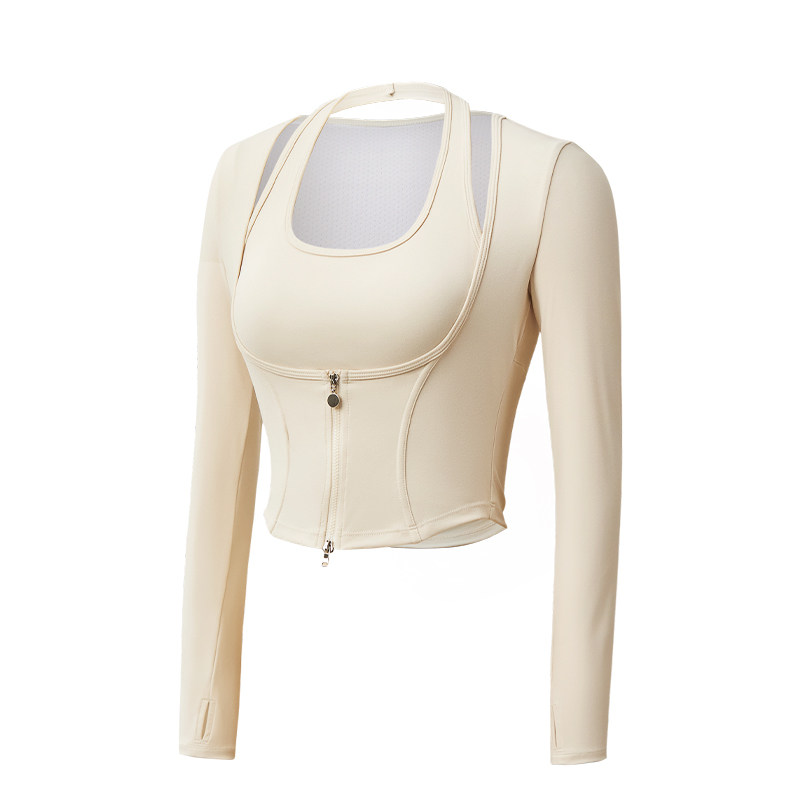 絮笛绝美瑜伽服长袖女套装带胸垫上衣挂脖运动健身普拉提训练服新