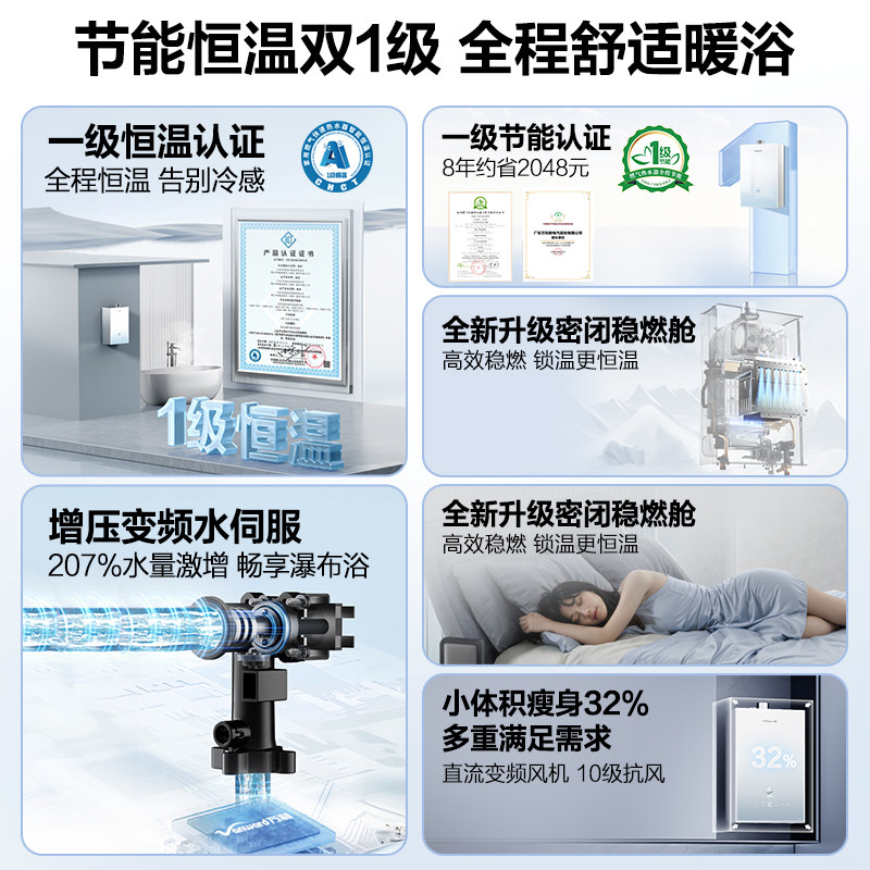 万和双一级恒温16L节能家用天然气燃气热水器星光M6PRO