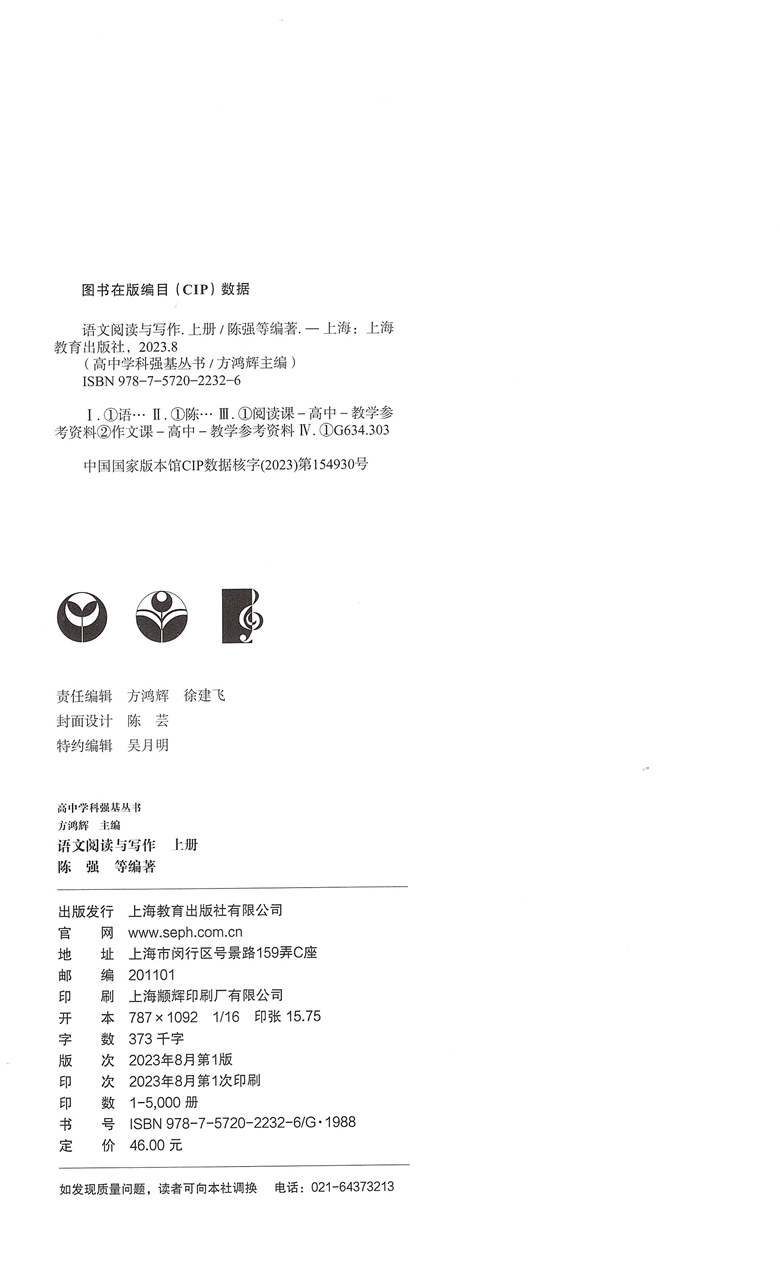 高中学科强基丛书语文阅读与写作上中下册原语文深度阅读练习册丛书高中语文课外练习中学教辅上海教育出版社