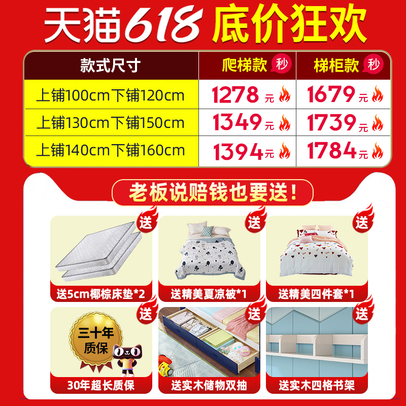 上下床双层床全实木两层儿童上下铺木床高低床多功能小户型子母床