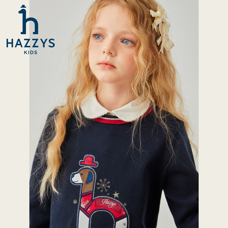 hazzys哈吉斯童装女童线衣秋新品中大童毛衣套头针织上衣