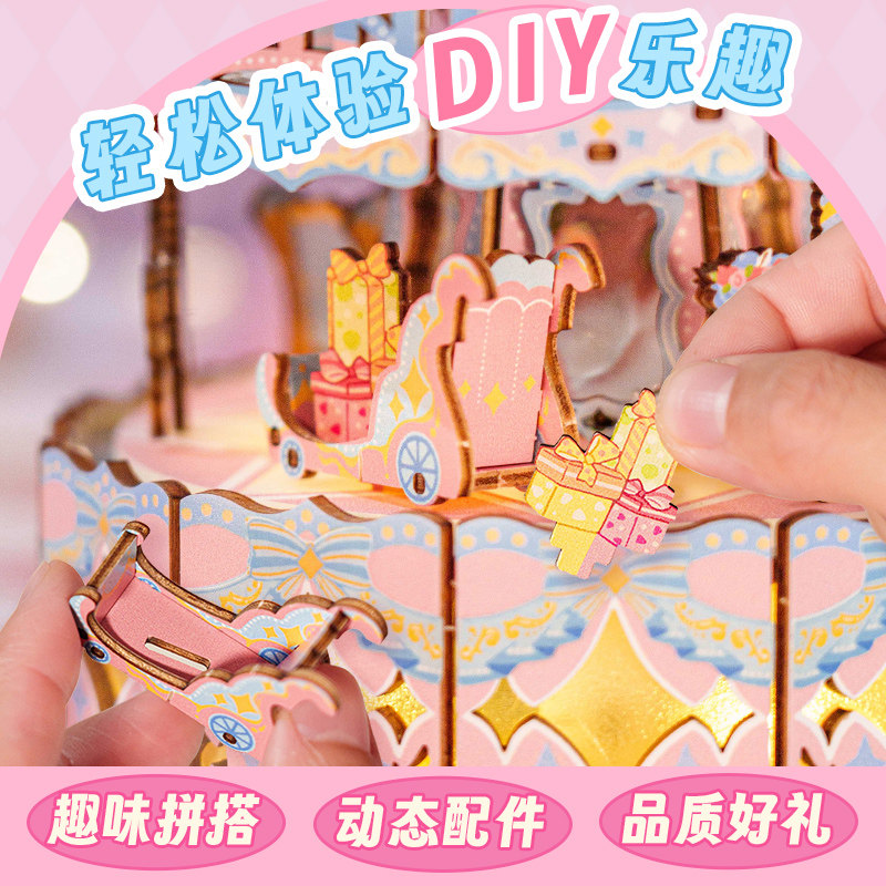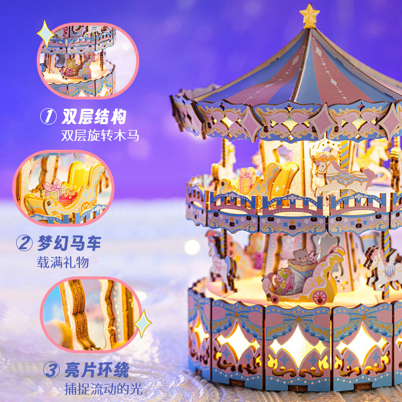 猫空双层旋转木马diy八音盒