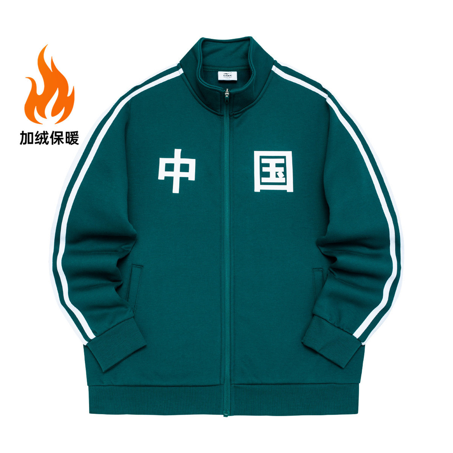 鸿星尔克开衫卫衣男女中国风国潮加厚针织男士运动休闲立领外套