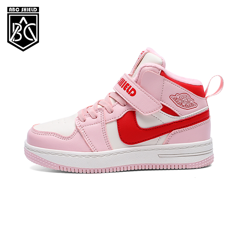 ABC SHIELD女童软底高帮二棉板鞋秋冬季儿童皮面防水加绒运动潮鞋