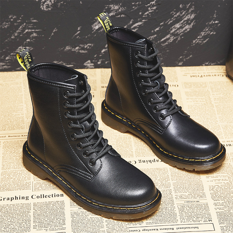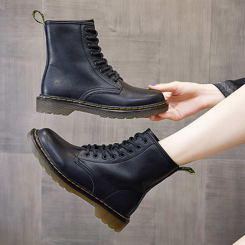 内八孔马丁靴女 英伦风复古系带潮流百搭骑士机车贴皮小码短靴