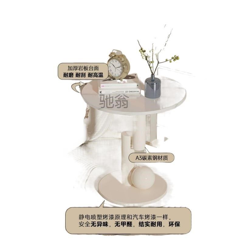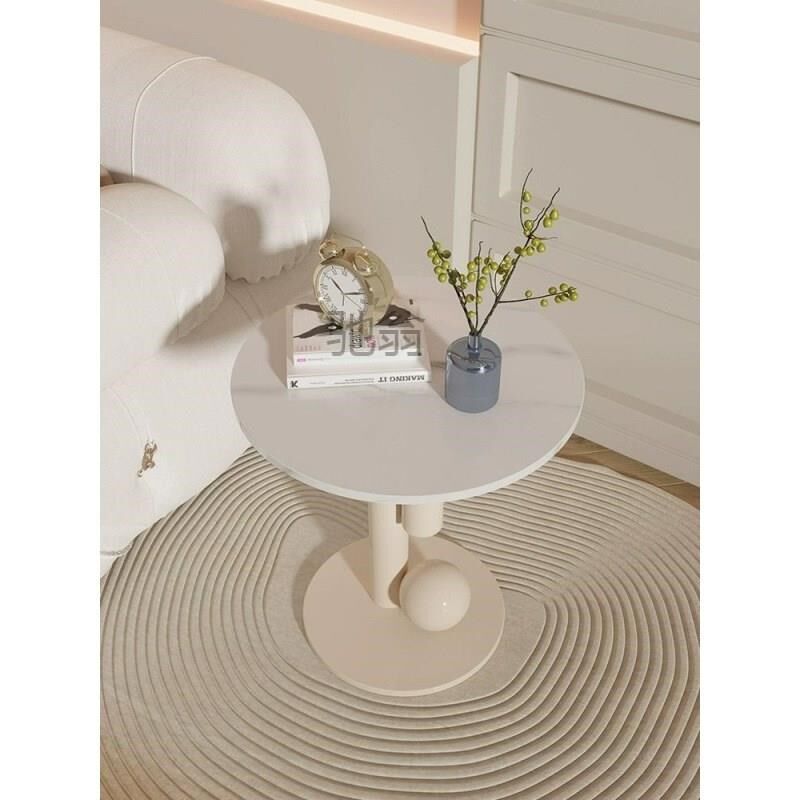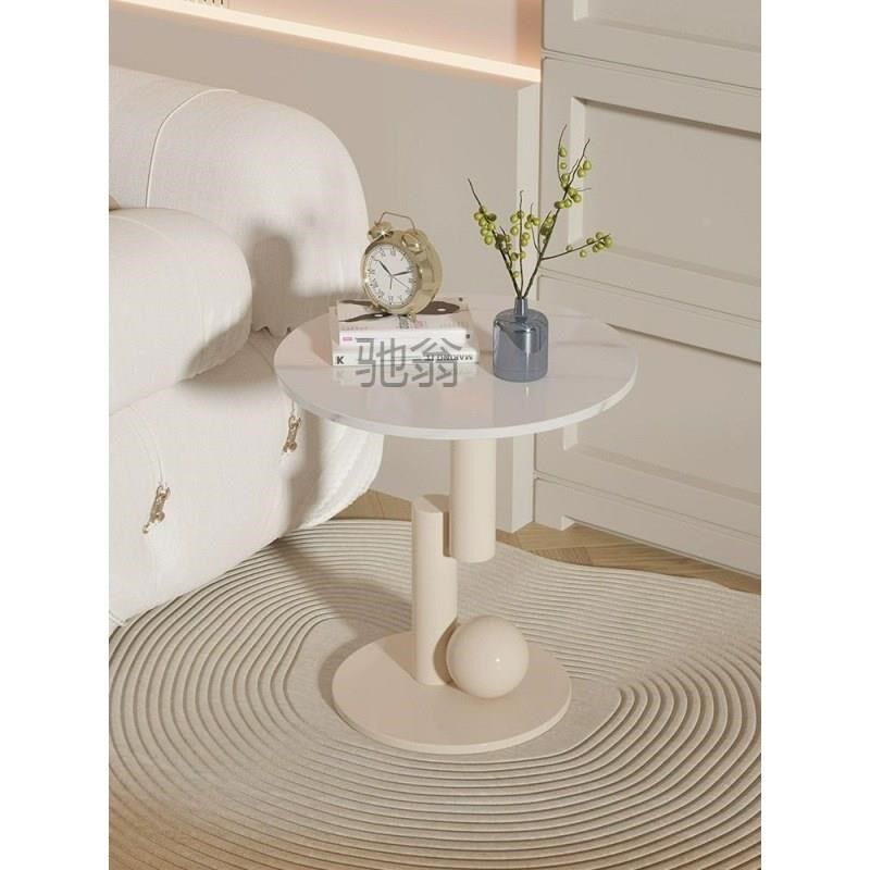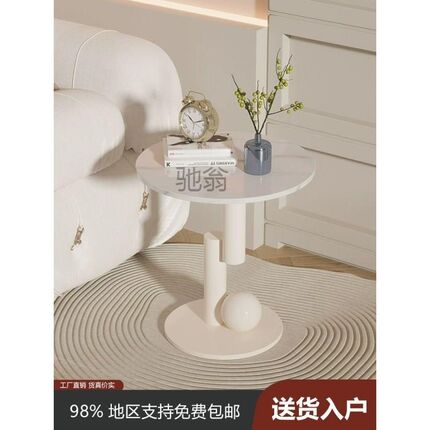 奶油风轻奢岩板边几o客厅沙发茶几小圆桌阳台卧室床边现代创意角