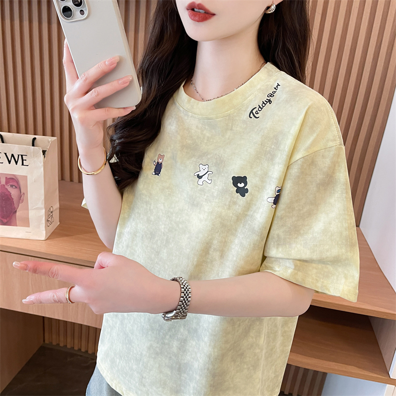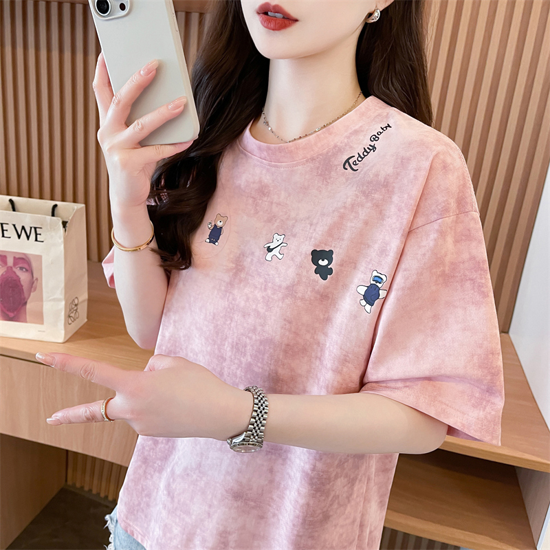 扎染纯棉短袖t恤女夏季韩版宽松大码女装设计感小众百搭半袖上衣