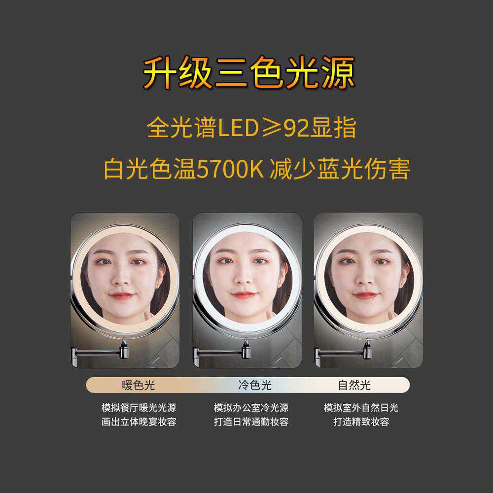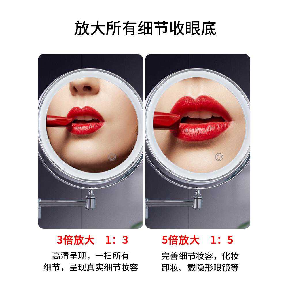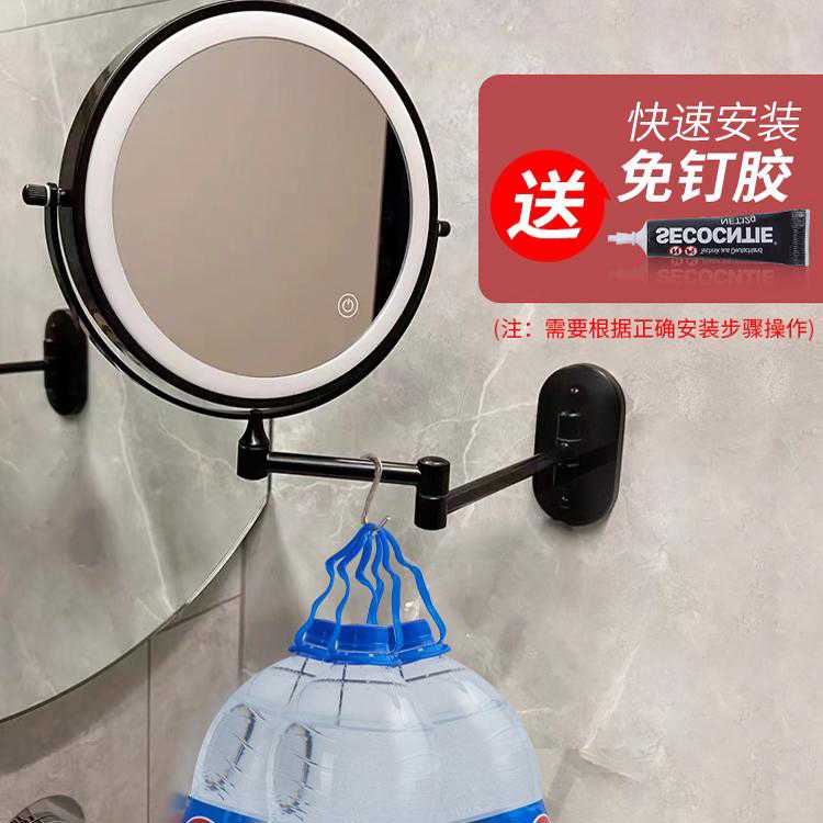 化妆镜壁挂免打孔浴室伸缩折叠放大镜子酒店卫生间led带灯梳妆镜