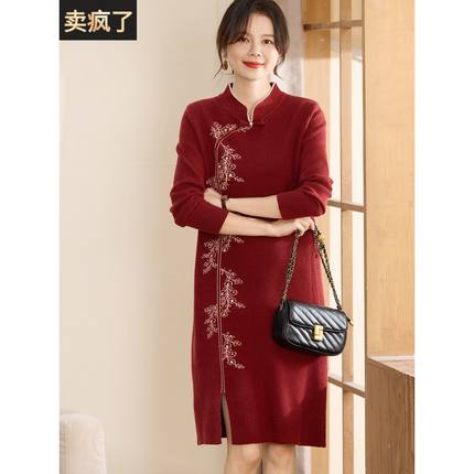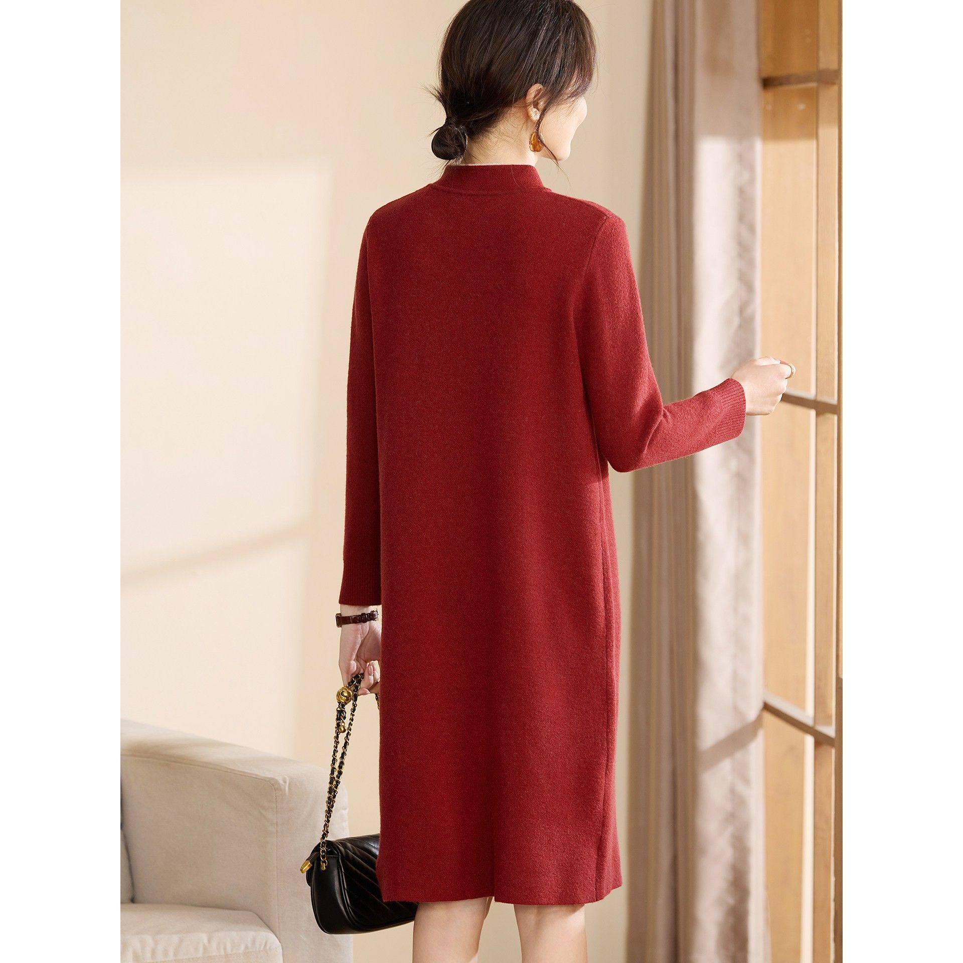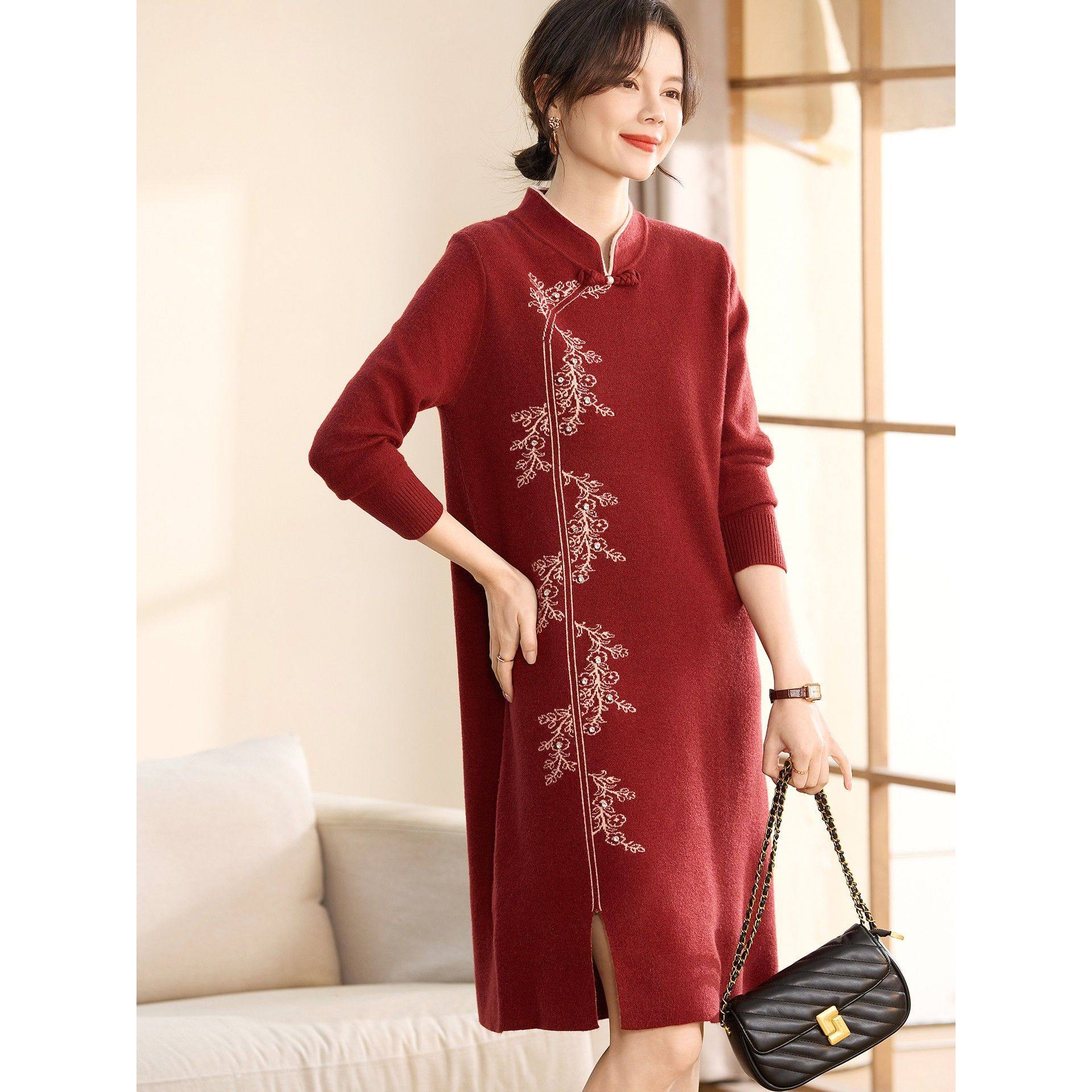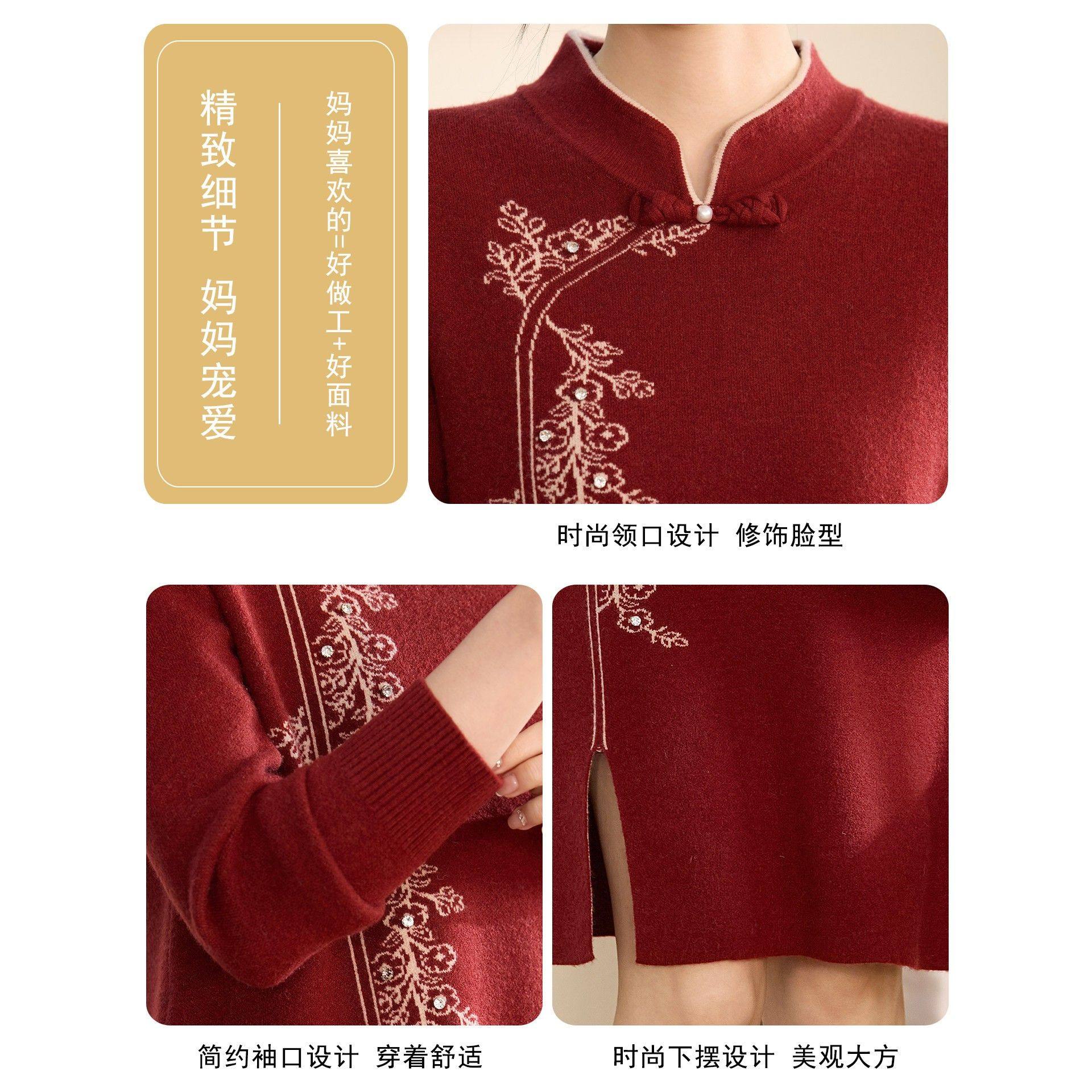 喜妈妈秋冬打底毛衣裙2025新款红色连衣裙中老年女装婚宴礼服裙子