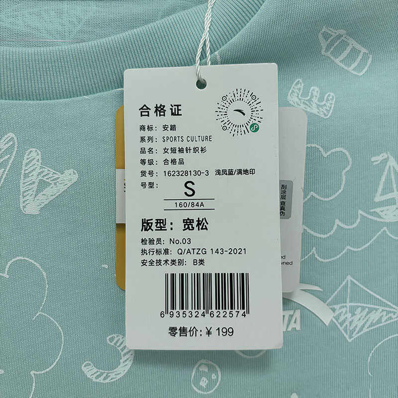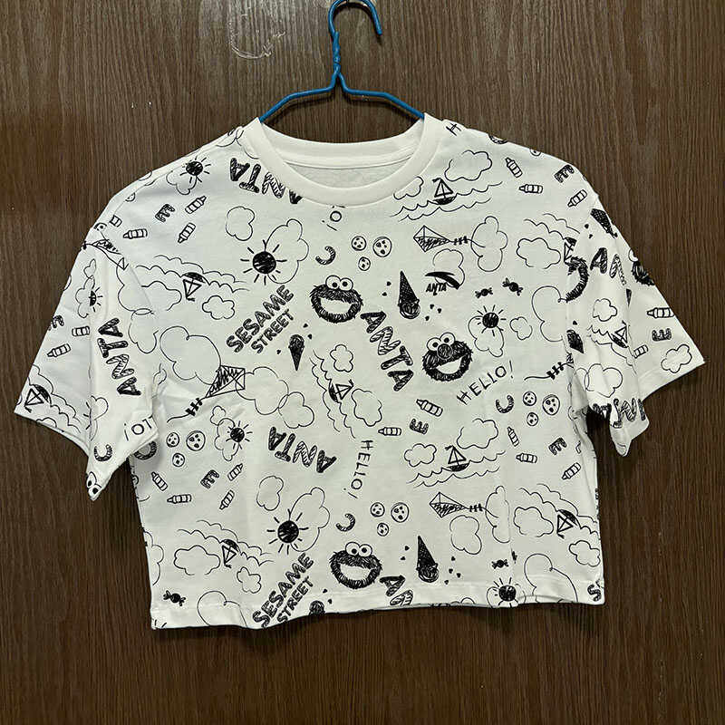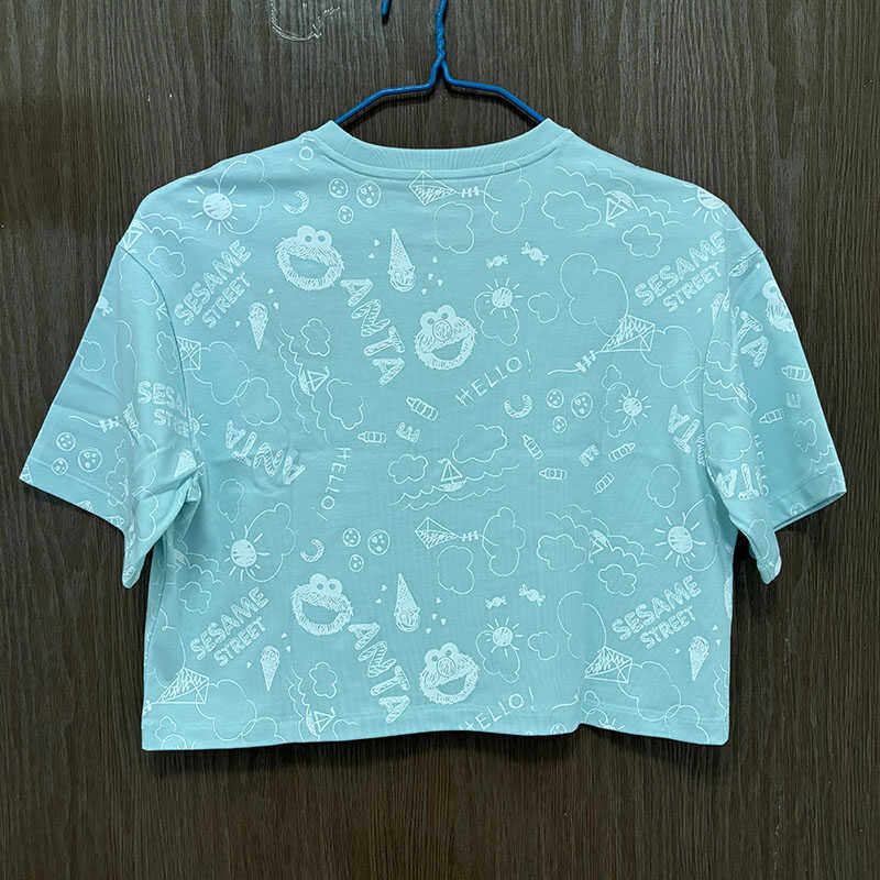 安踏正品夏休闲宽松青年短袖芝麻街t恤女士短款露脐上衣162328130